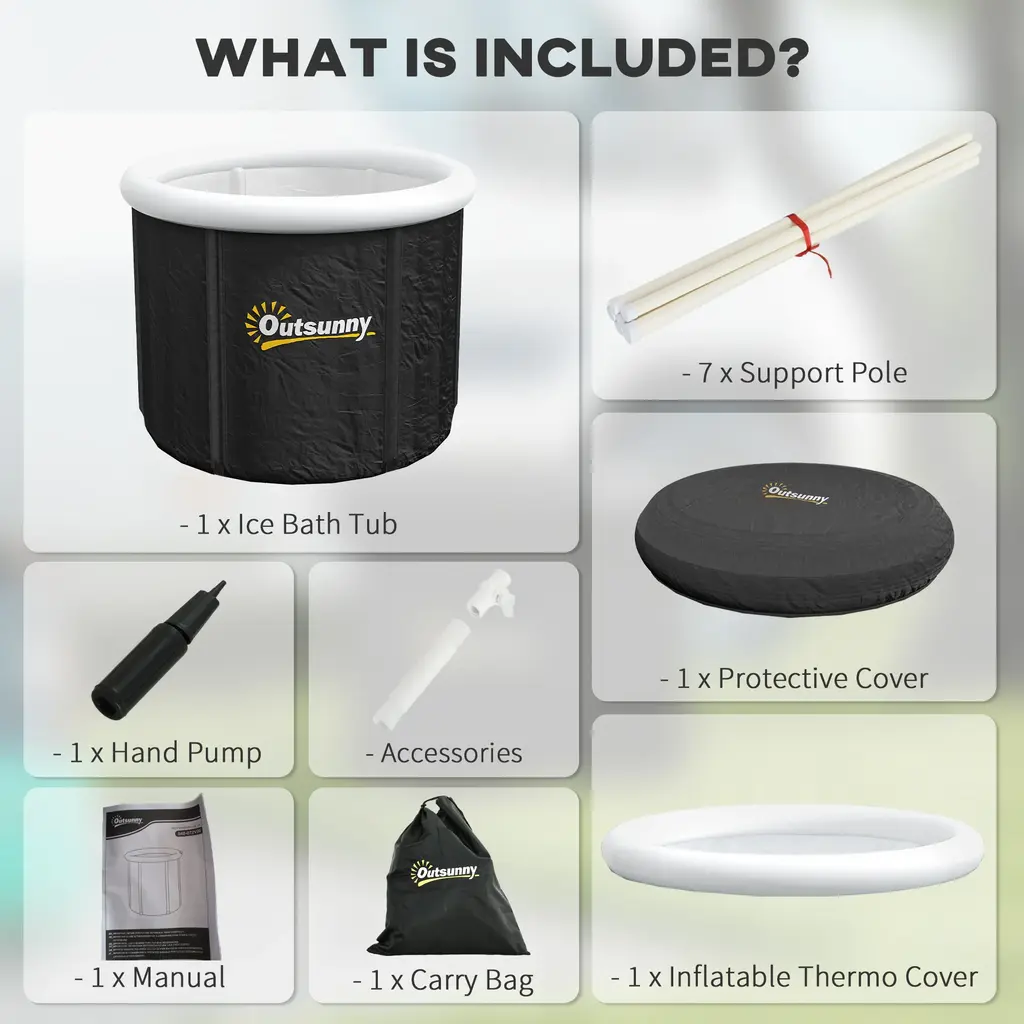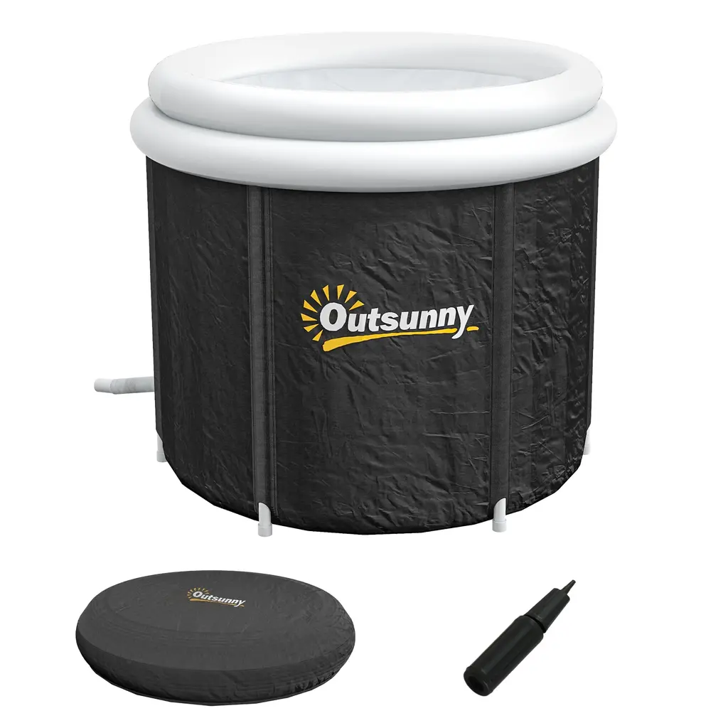 Outsunny Ice Bath Tub, Portable Cold Plunge Tub Outdoor With Thermo Lid, Cover And Carry Bag - Black