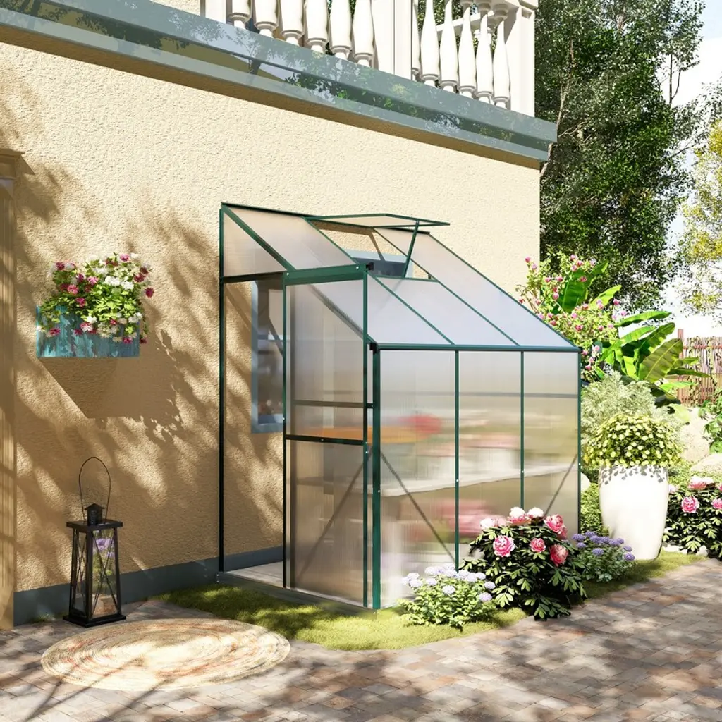 Outsunny Walk-in Garden Greenhouse Aluminum Polycarbonate With Roof Vent For Plants Herbs Vegetables With Reinforced Structure, 6' X 4' X 7' Green