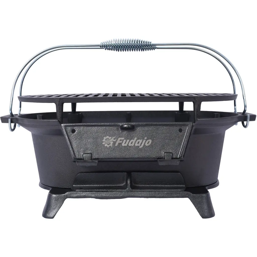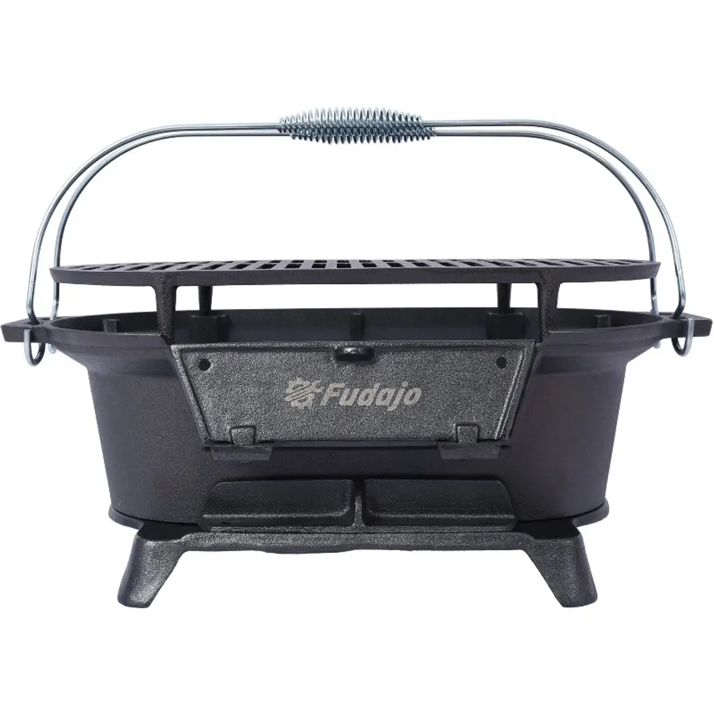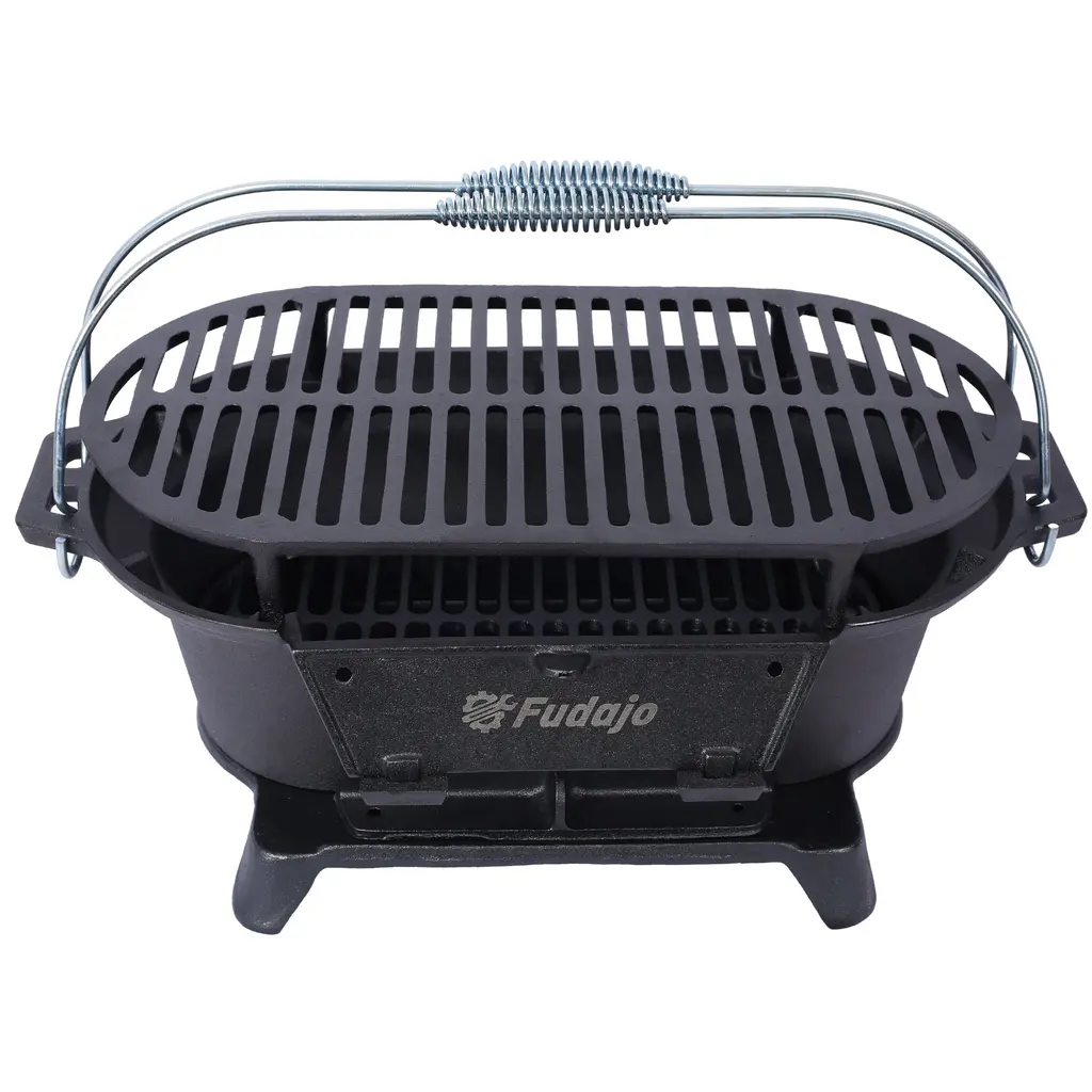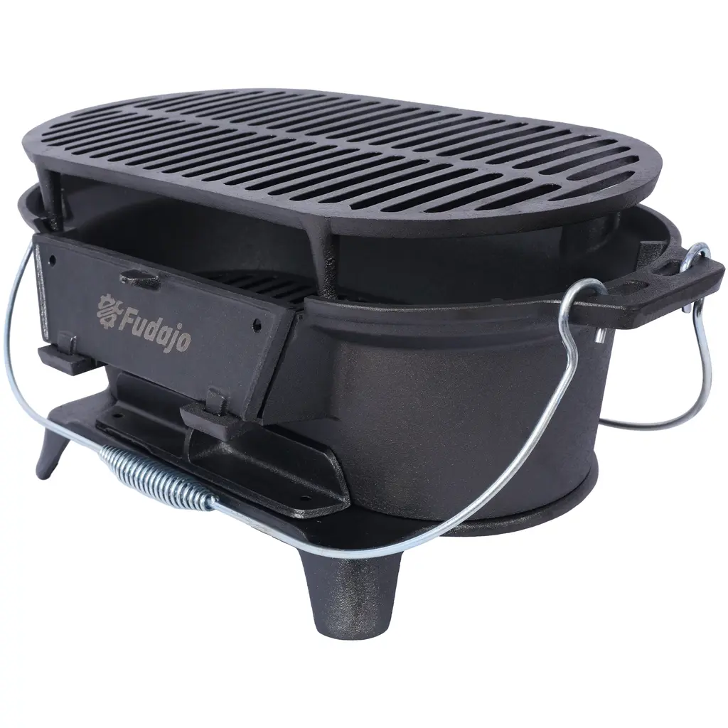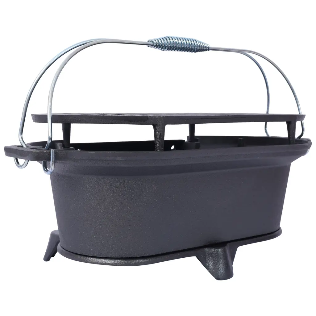 Oval Cast Iron Grill Outdoor, Portable Charcoal Grill And Tabletop Cast Iron Skillet - 100% Cast Iron, Enameled, Durable - Cast Iron