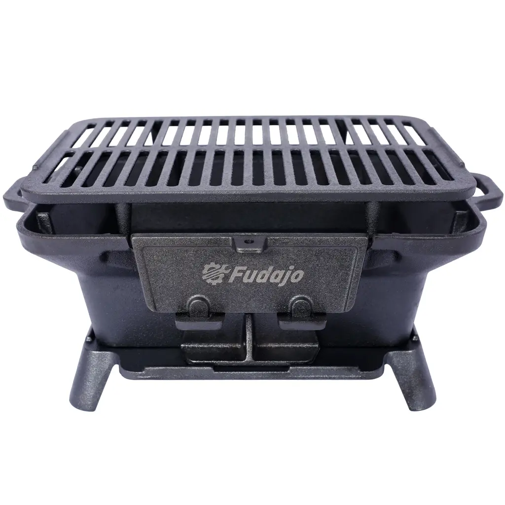 Specification: Key Features:Description:This oval cast iron charcoal grill is perfect for outdoor adventures, including camping, tailgating, picnics, and barbecues. Its portable design features built-in handles for easy transport and a durable enameled surface that resists scratches. The grill offers versatile cooking options, ideal for searing meats, vegetables, and seafood over an open flame. With excellent heat retention and a built-in vent for temperature control, it ensures consistent cooking on any flat, heat-safe surface. Cleanup is a breeze with removable grates and an easy-to-maintain enamel coating. Designed for convenience and reliability, it's a great companion for any outdoor cooking enthusiast.
