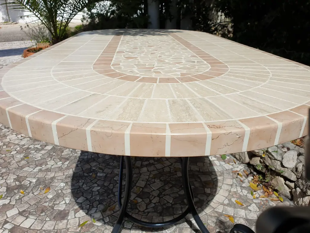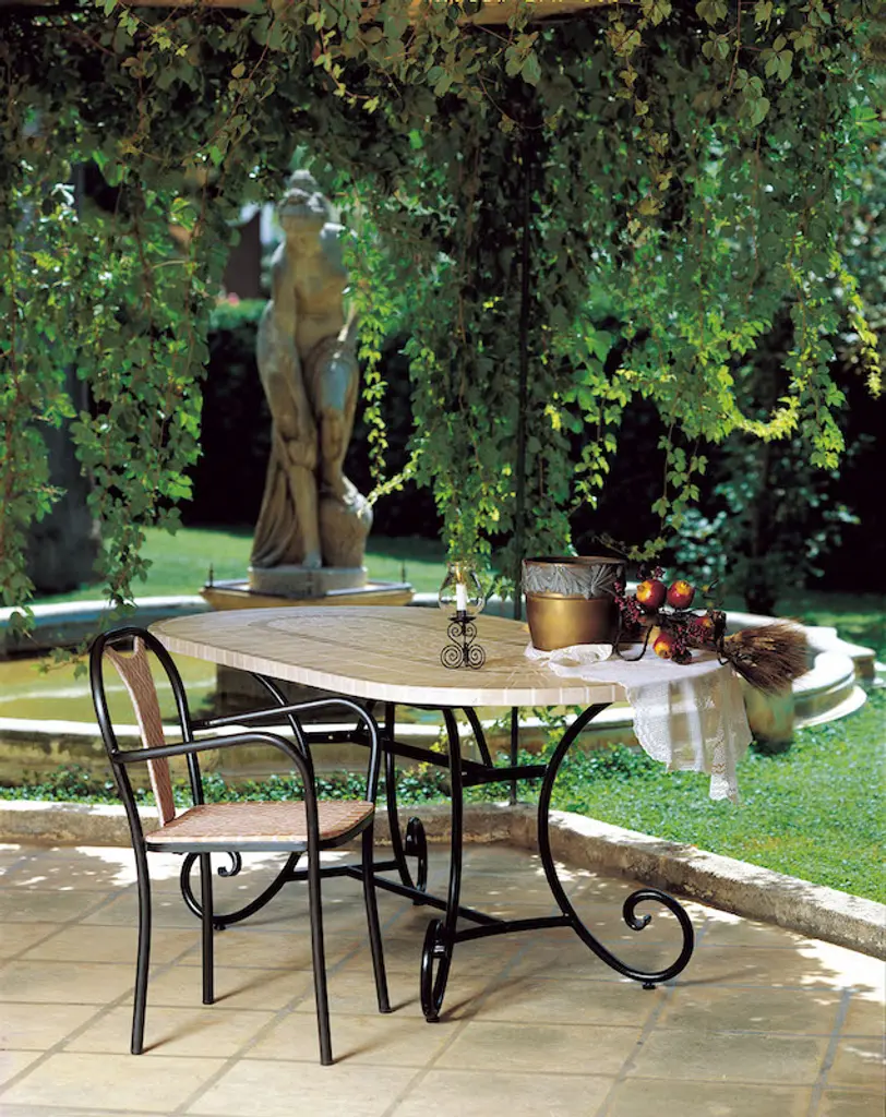 <p>This table is part of the<em> Precious Garden</em> collection, an exclusive line of garden furniture from Egram. It's created with skillful craftsmanship in the laboratories of Industria Marmi and Pietre srl with the purpose of embellishing the most beautiful open spaces such as gardens, terraces, and porches. Each <em>Precious Garden</em> creation is meticulously studied, realized, and finished through mainly manual working techniques that give life to productions rich in colors, shape, luxury, and elegance. Every single product is made using only first choice materials: the precious marble compositions that characterize these furnishing accessories are stuccoed with epoxy resins for food, the seat top is in light structure. The supporting structure is made of steel forged by hand and stove enameled with epoxy powders in order to resist the different environmental conditions. All the products are entirely made in the Lecce plant, respecting the quality and rigor of the details. Marble is a natural product, differences in colour and grain are to be considered characteristics of the same.</p>