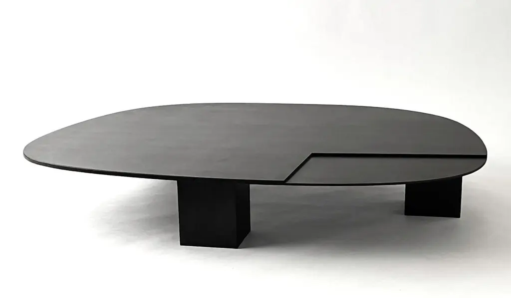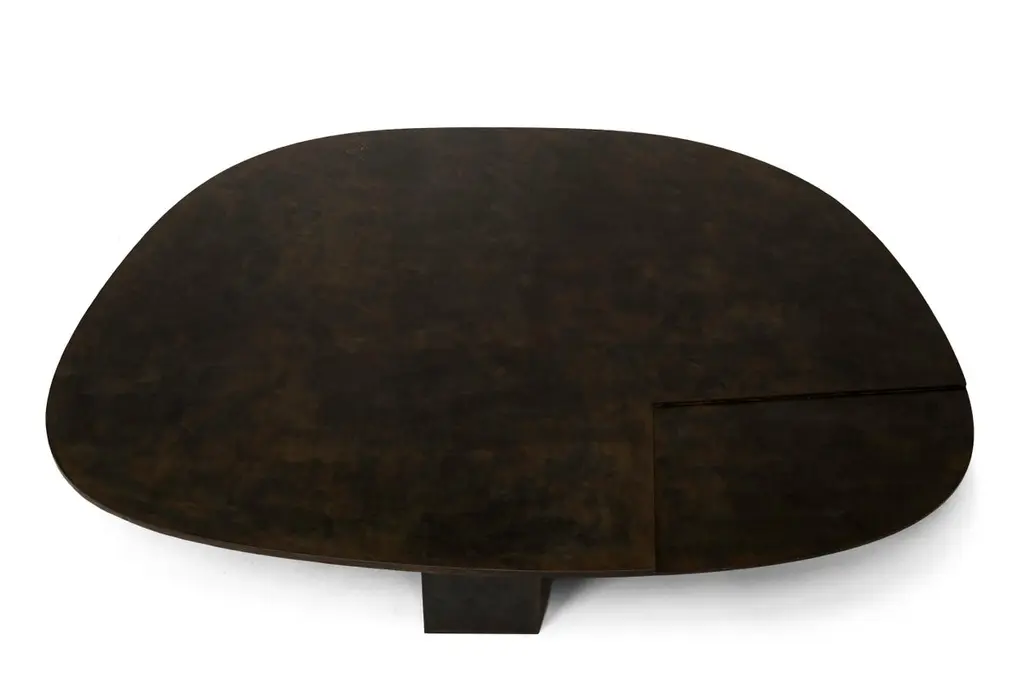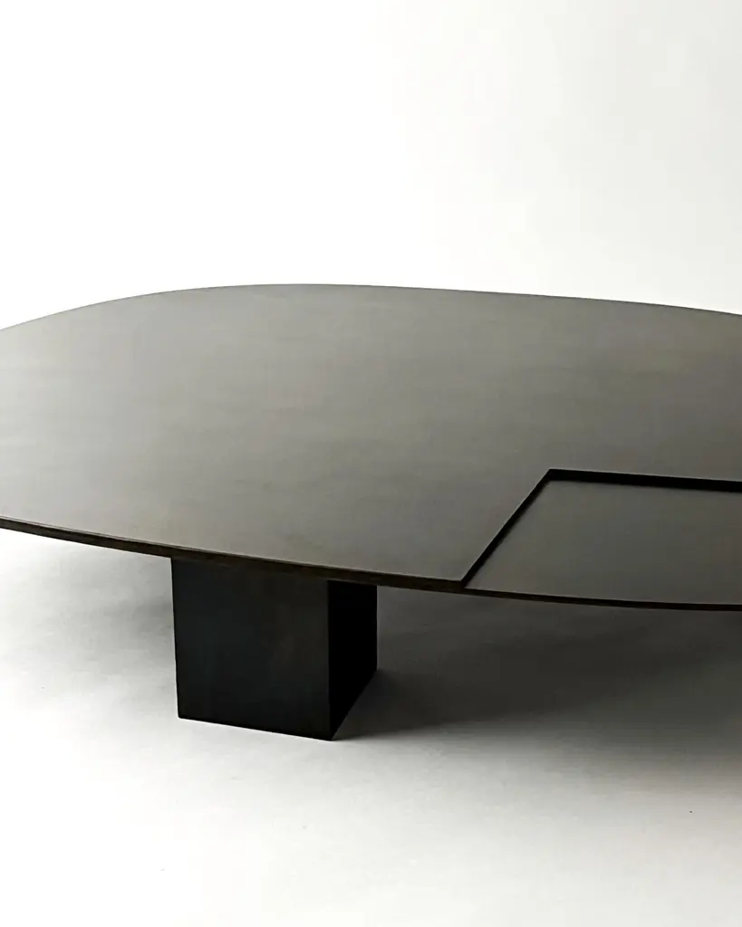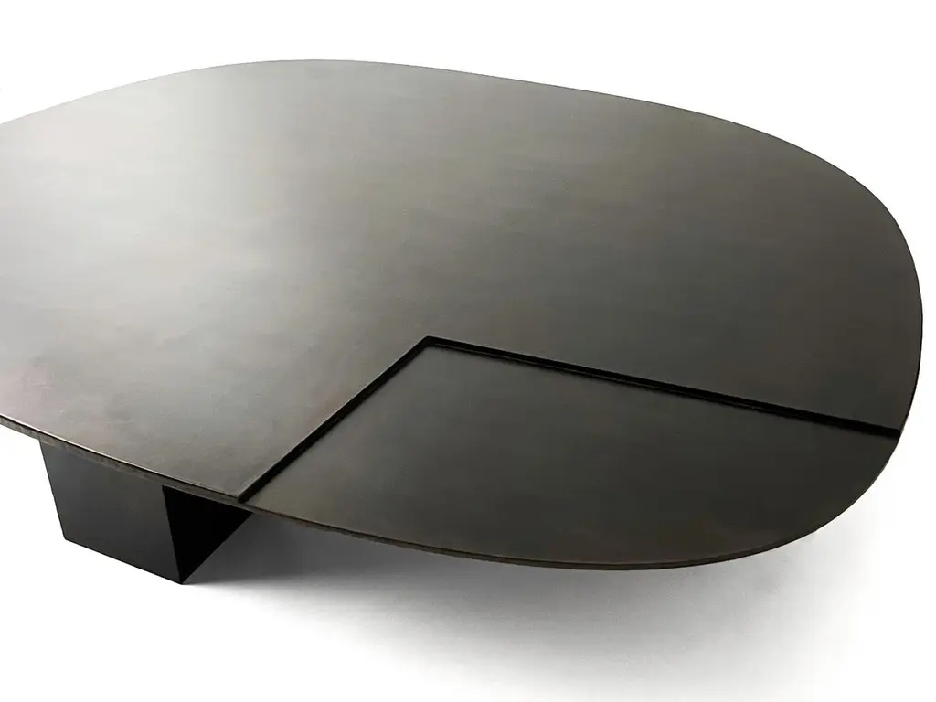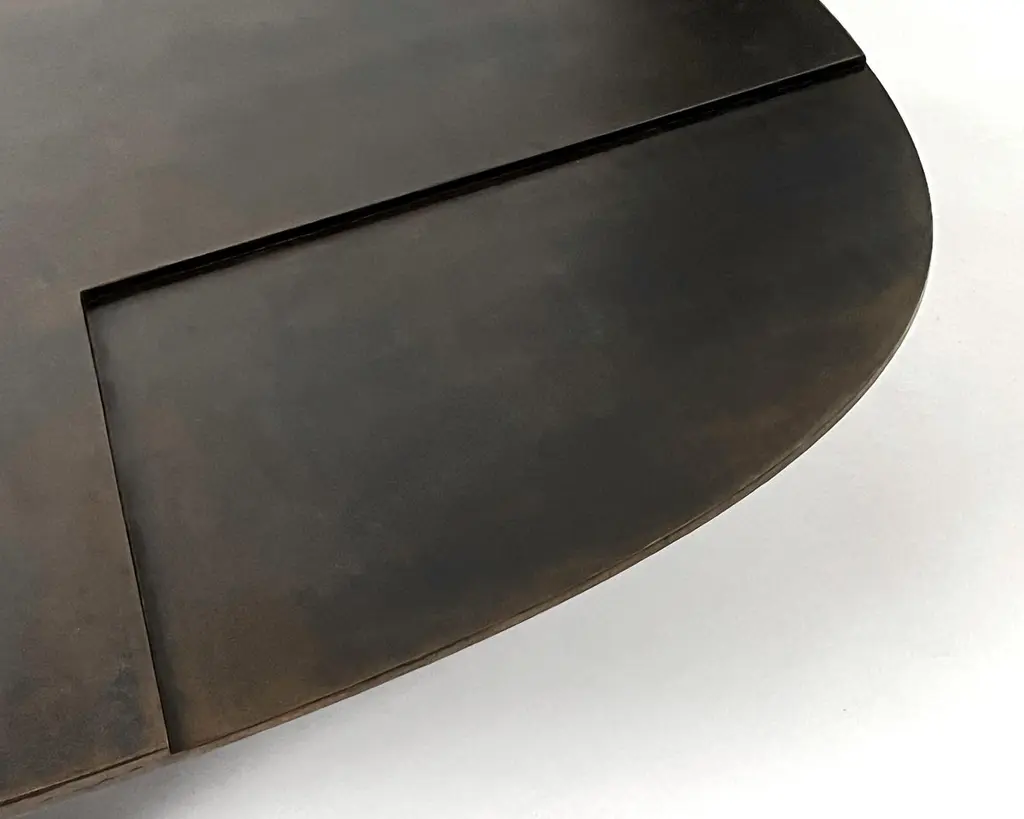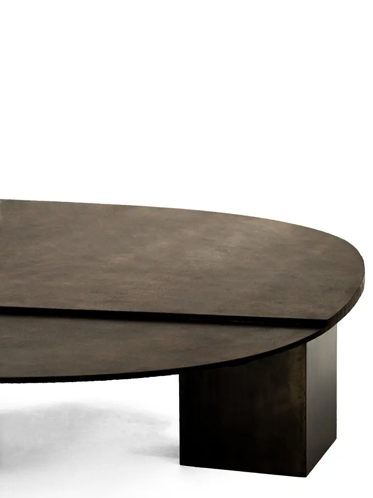 Ovoid Table by Cal SummersDimension: W 140 x D 113 x H 23 cmMaterials: Patinated Steel.Cal Summers is a British designer who makes bespoke handmade furniture and contemporary artefacts in which he challenges the boundaries of materiality and form.Born in 1994, Cal grew up in the Kent countryside of South East England.Coming from a family of creatives, father being a still life photographer and mother an art director, he has been honing his skills in the creation of new shapes and ideas from an early age.After graduating in 2017 in 3D Design and Craft from the University of Brighton, Cal has been recognised internationally by top interior designers and architects, and is being represented by both designers and galleries in New York City.He currently lives and works in Montreal, where he creates his pieces with an unprecedented attention to detail and an exploration into new areas of design innovation.