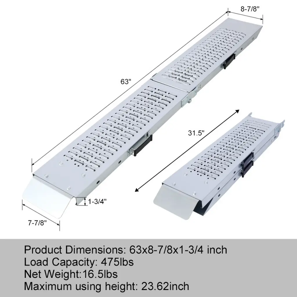 Pack Of 2 Steel Loading Ramps, Heavy Duty Folding Ramp, Portable Anti-slip Wear-resistant Access Ramp, 950lbs Capacity Max For Atv, Motorcycle, Truck