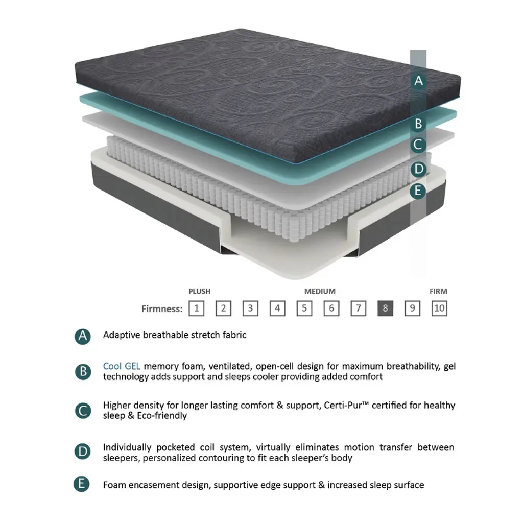 Paged 8 Inch Twin Size Bed Mattress Gel-infused Memory Foam Mattress Hybrid Mattress With Pocket Coils For Comfortable Sleep, Dark Gray