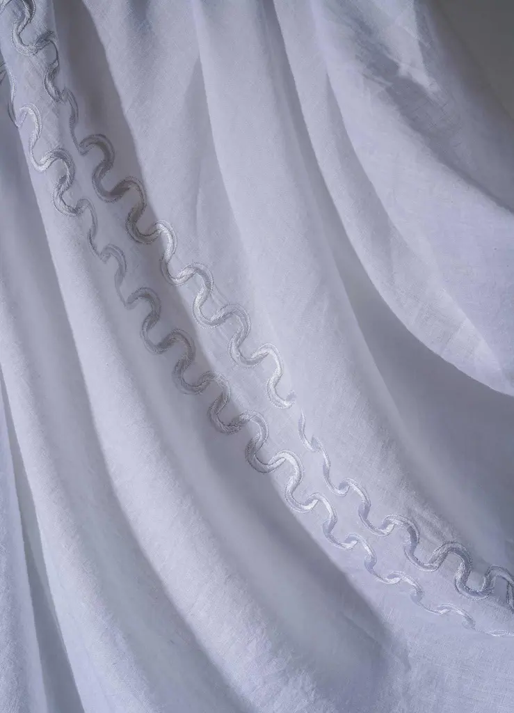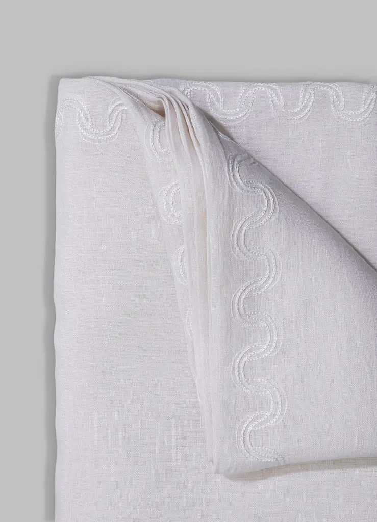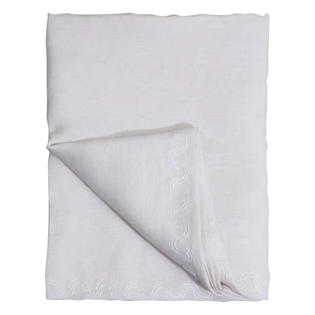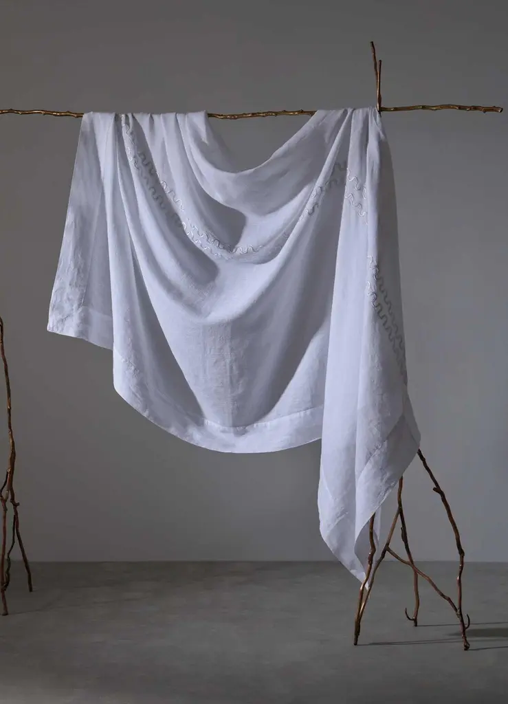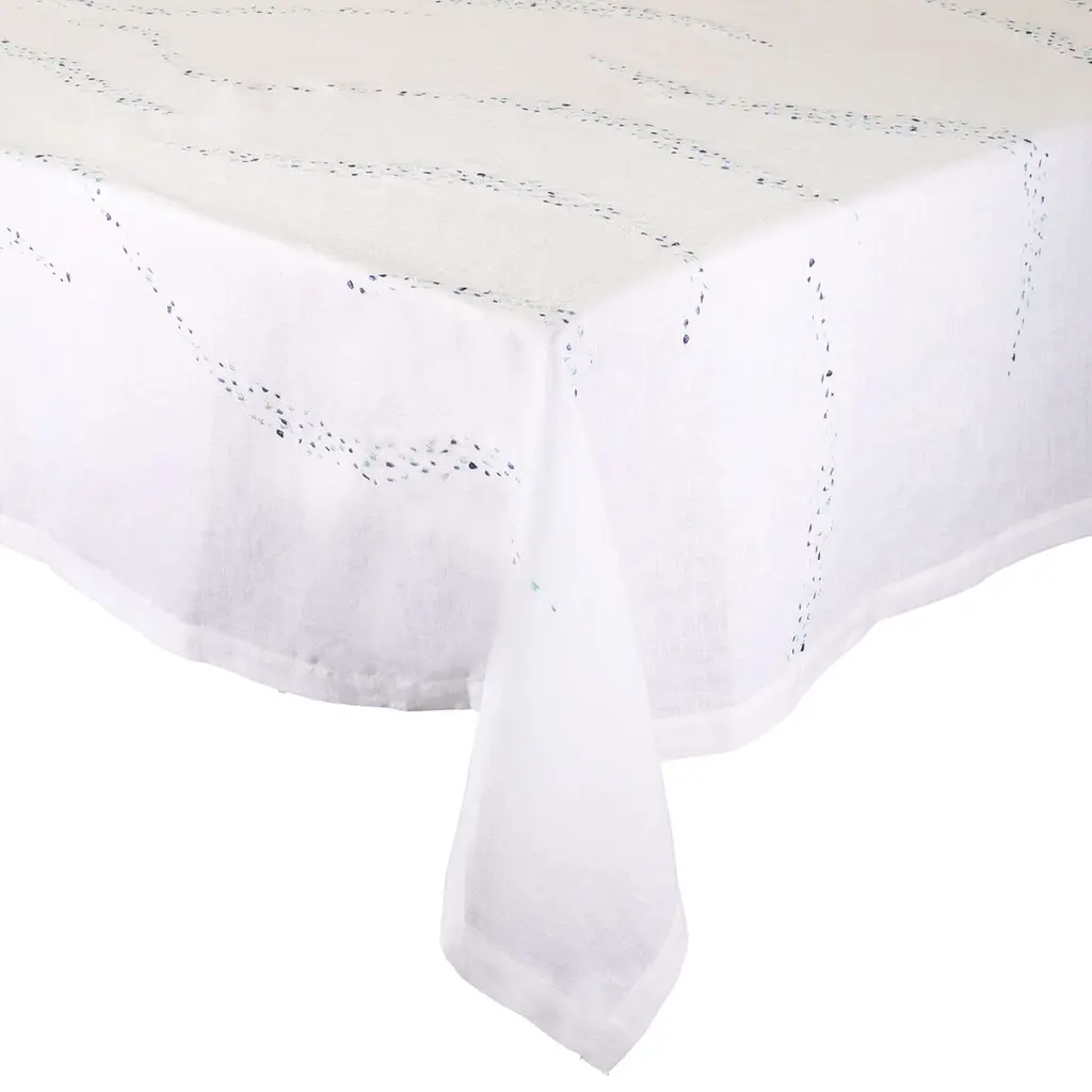 Paigah Hand Embroidered White Linen Table Cloth, Viya by Vikram GoyalHand-embroidered on linen, a refined sophistication defines this collection of white-on-white textiles, where texture, technique, and light highlight the delicacy of craftsmanship. Inspired by the intricate latticework of Paigah jaalis, each piece creates a sense of purity and timelessness, capturing the serenity of the Indo-Islamic architecture.Table cloth in linen. Hand embroidered in India.Product DetailsMaterial: LinenSize: 60"W x 90"L 152.4 W x 228.6 L cmWeight: 0.6 1.32 lbsNumber of Pieces: 1 Table ClothSKU: VTC751This product has been handcrafted by local artisans. As such, slight variations are a testament to the unique character of a piece made by hand.Country of Origin: India