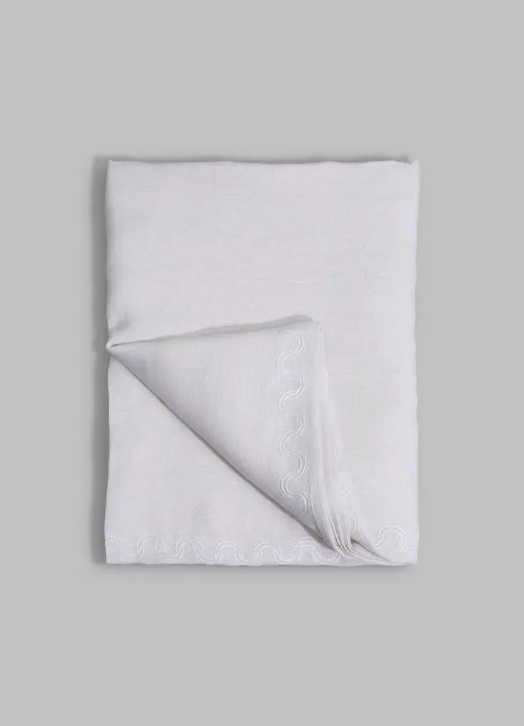 Paigah Hand Embroidered White Linen Table Cloth, Viya By Vikram Goyal