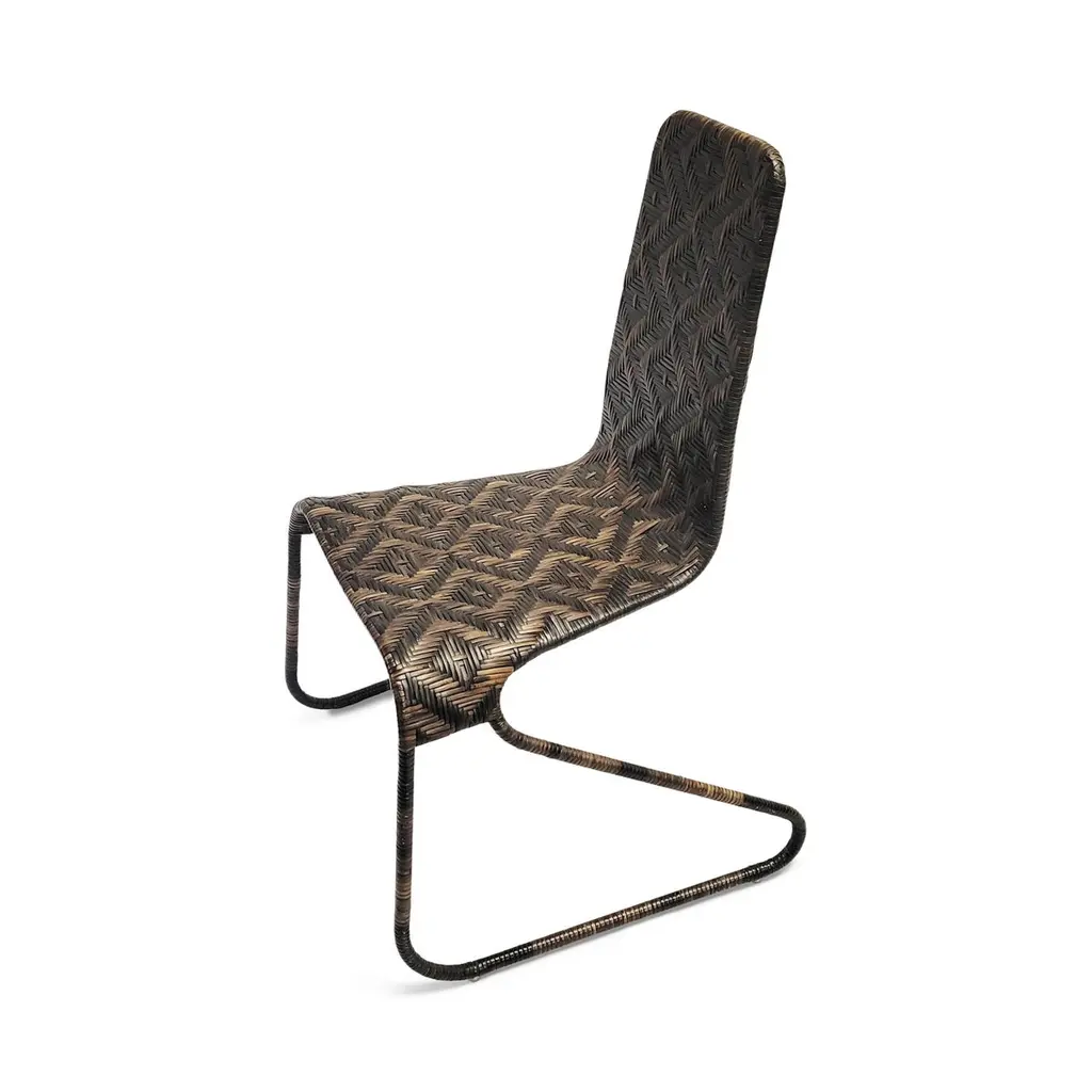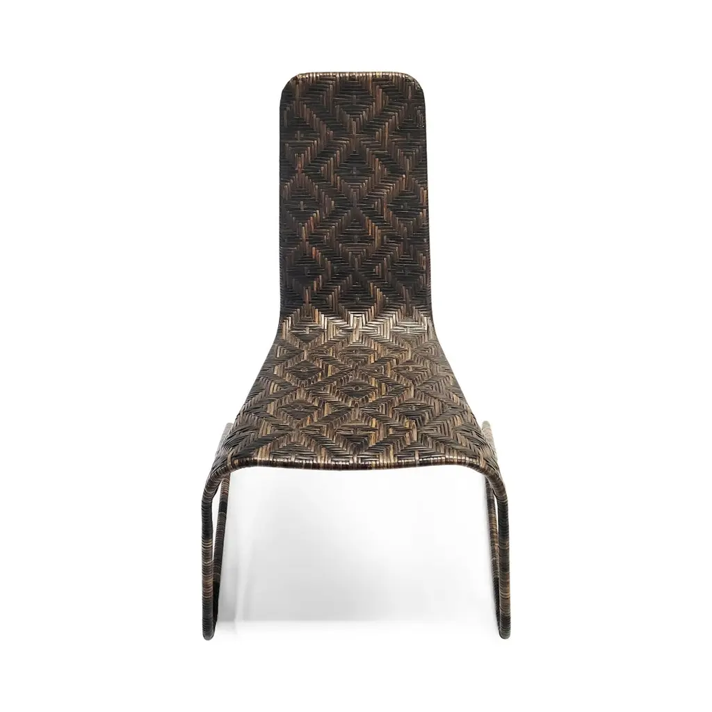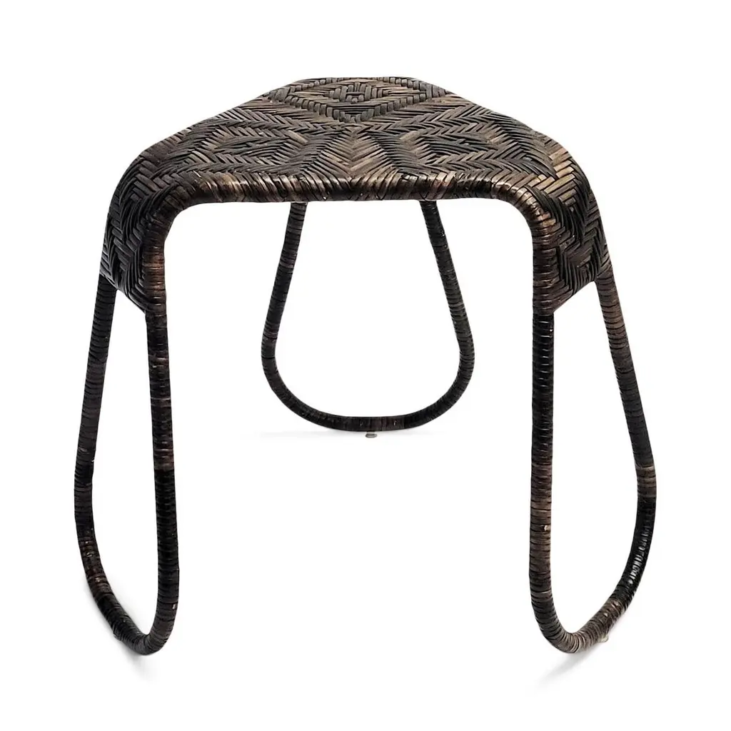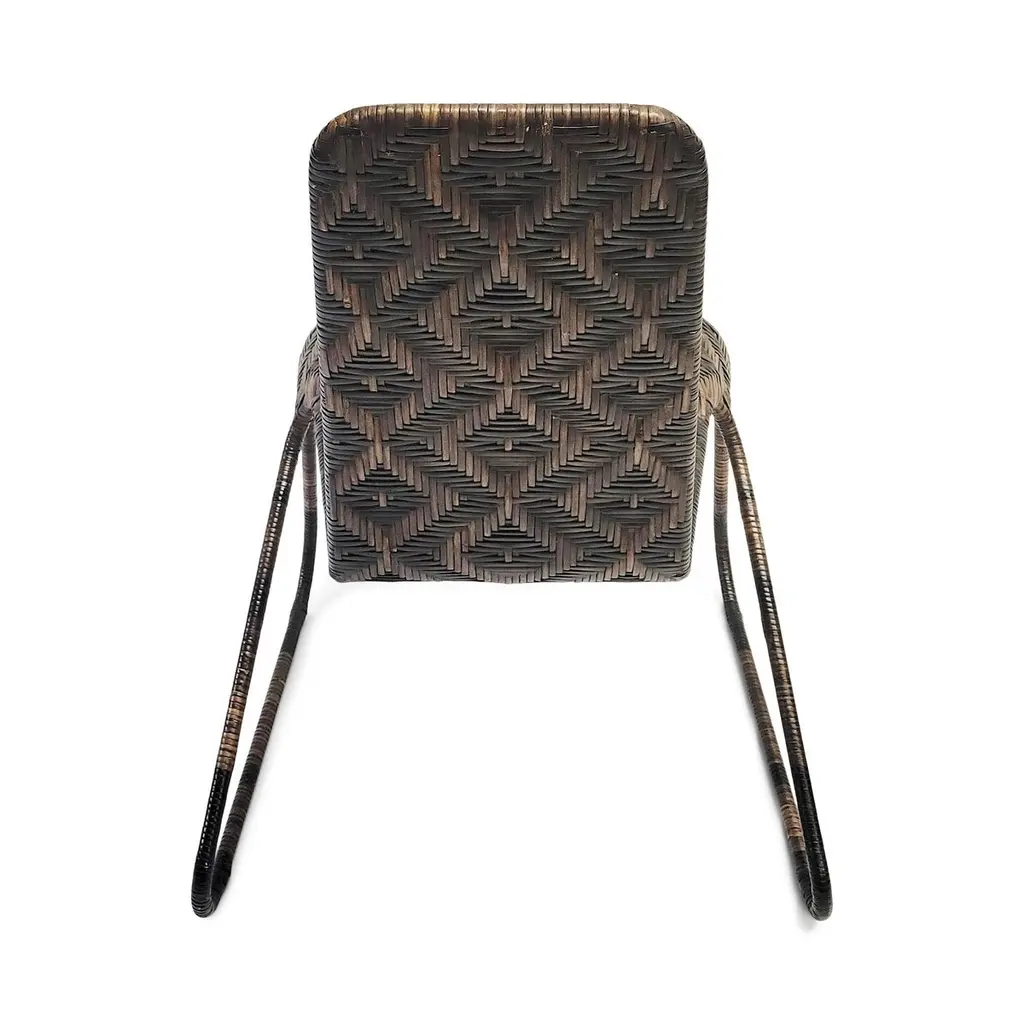 Spanish-born, Milan-based architect and designer Patricia Urquiola’s design for the Flo line for Driade relies on steel structures covered in cane, giving the pieces a durability and stability matched by a bright and lively decorative quality. The sensual shape of the chairs and table, minimalist and functional at the same time, provides for an overall stunning visual effect. This set includes two Flo chairs and one side table.Urquiola has designed products and hotels for B&B Italia, Cassina, Moroso Alessi, Baccarat, Salvatore Ferragamo, Kvadrat, Mandarin Oriental, Panerai, Rosenthal, W Hotels, and Louis Vuitton, and her architecture projects can be found all over the world. Her work can also be found in the design collection of New York’s Museum of Modern Art, among many other museums.In very good condition.Chairs are 23.5” x 21.75” x 33.75”, 17” seat heightTable is 13" x 13" x 16"