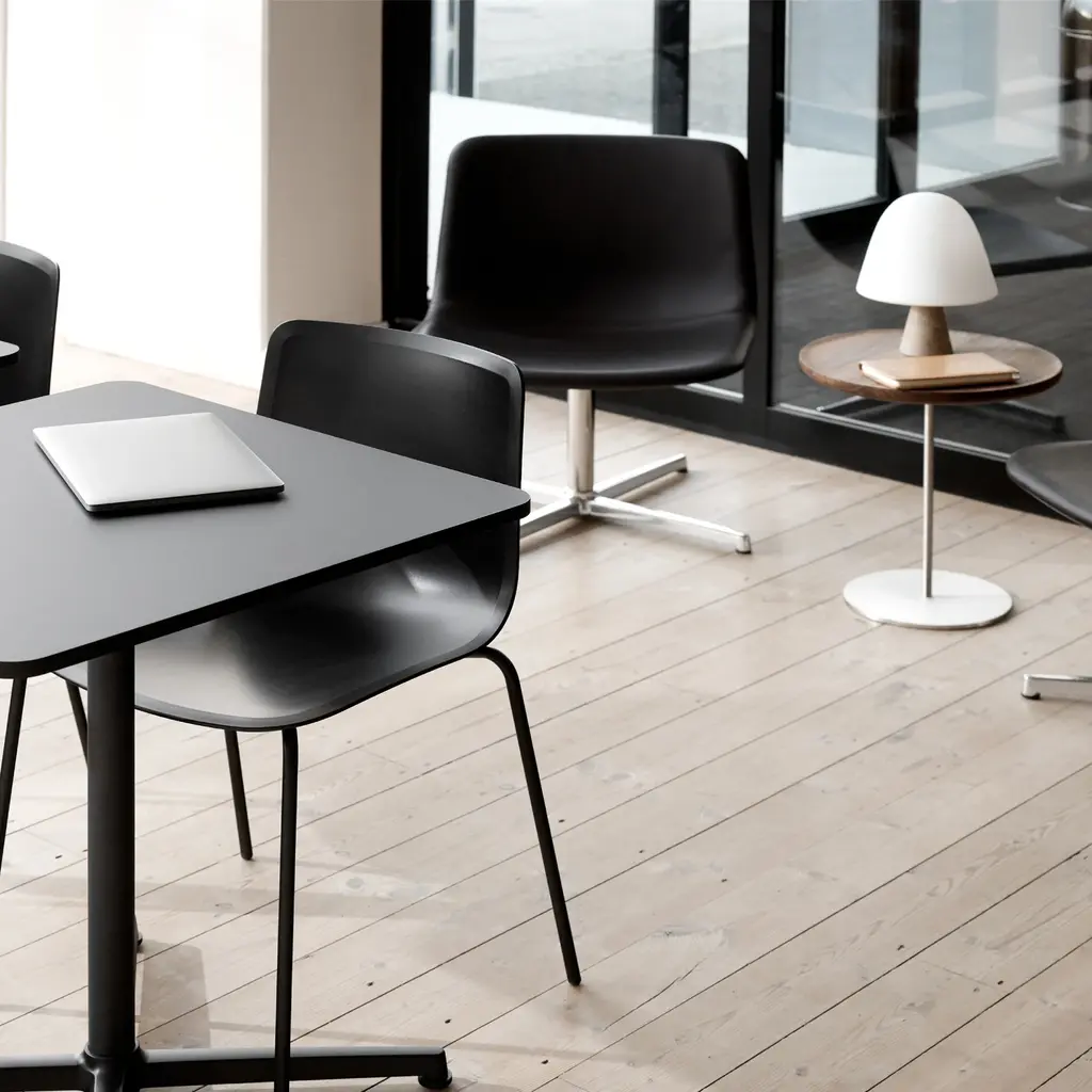 With its uncomplicated profile and easy mobility, Pal easily adapts to a larger version for more spacious environs. Milan-based Japanese designer Keiji Takeuchi's occasional table features a surface crafted to look like a wood serving tray and exhibits its versatility in a choice of 3 varied heights. Crafted in solid oak or walnut, the tabletop is offered in a range of finishes, complemented by the slim steel pedestal in stainless or black powder coat.