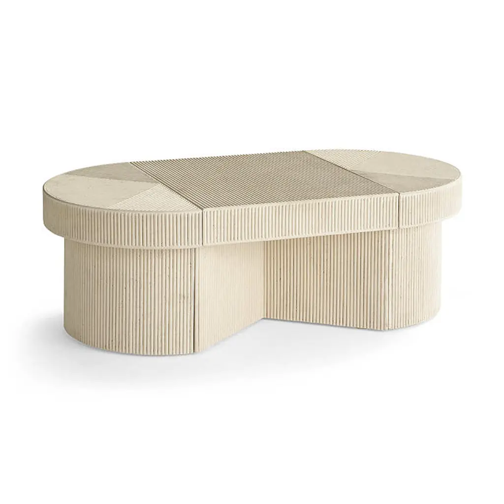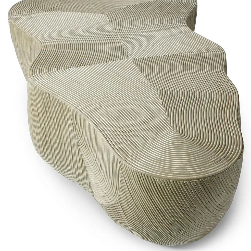 Palecek Fairfax Coastal Brown Rattan Solid Wood Frame Freeform Coffee Table