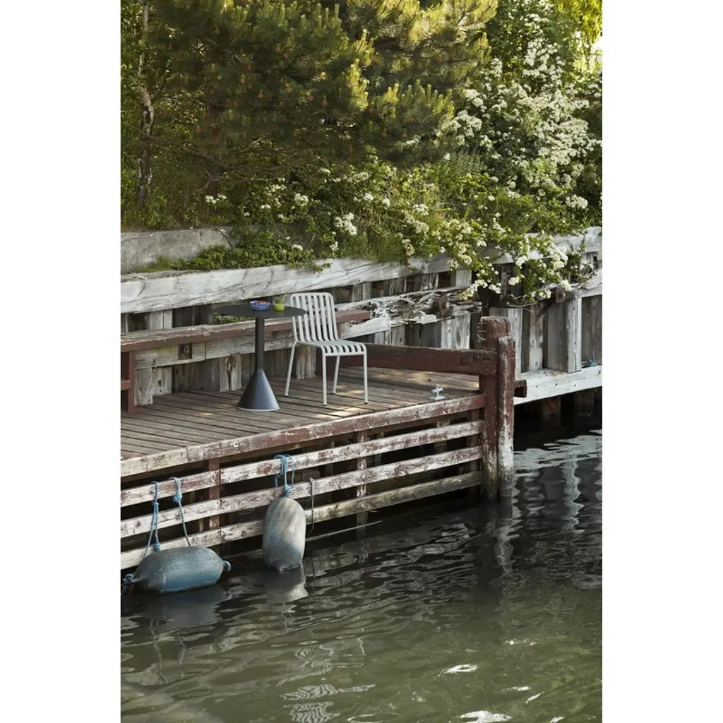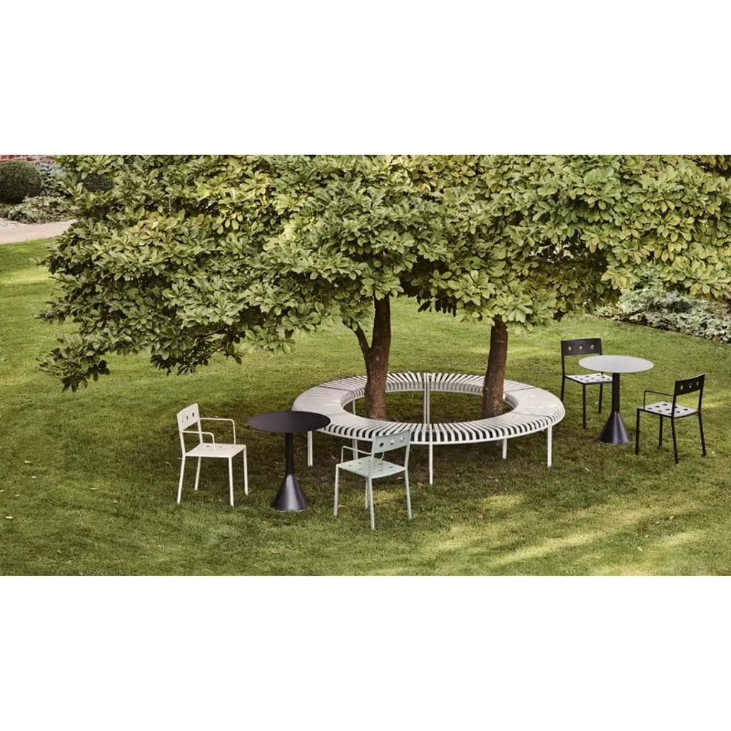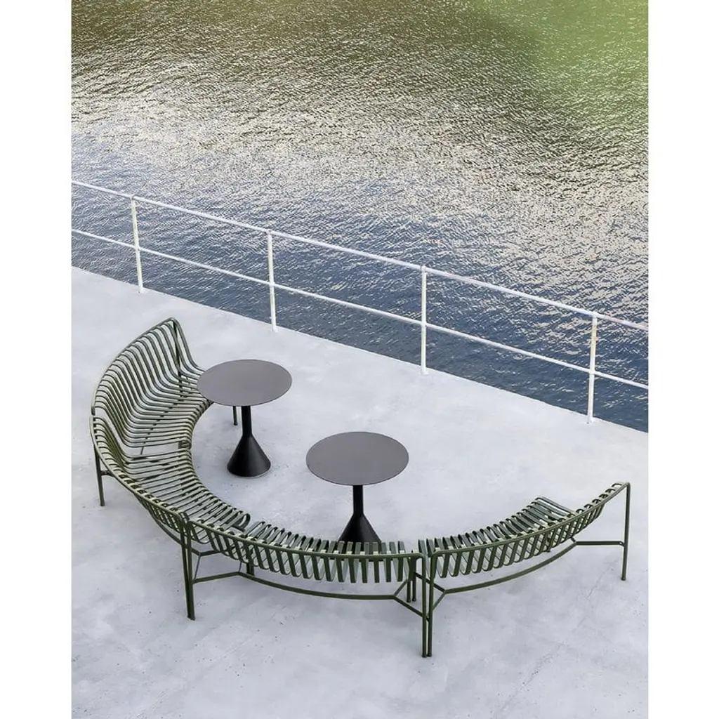 A combination of a cone-shaped leg and a thin steel tabletop, the Palissade Cone table is a bold and versatile addition to HAY's outdoor furniture collection. Palissade outdoor furniture features a strong, graphic design that consists of simple lines and shapes, made of steel. Ronan and Erwan Bouroullec worked with the collection for two years and created a range of simple, elegant and balanced pieces that are well suited for terraces, balconies, gardens, cafés and public spaces. The sturdy Palissade furniture was designed to age well and stand different weather conditions, and its muted color palette adds to the timeless and versatile appearance.