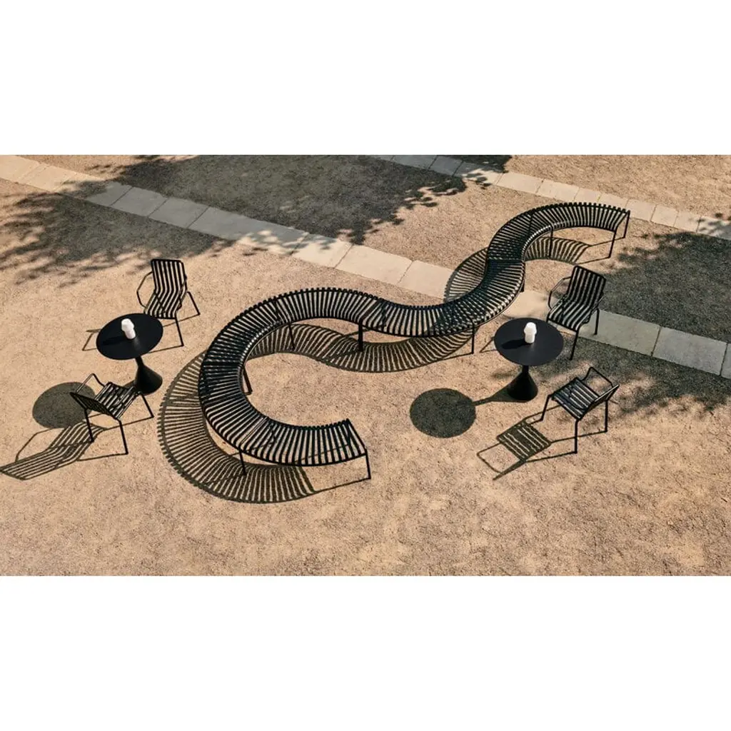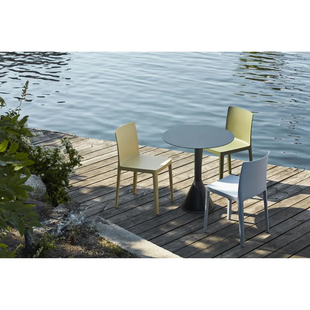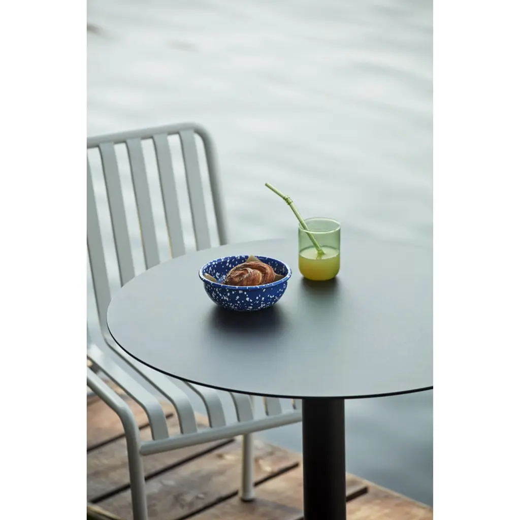 A combination of a cone-shaped leg and a thin steel tabletop, the Palissade Cone table is a bold and versatile addition to HAY's outdoor furniture collection. Palissade outdoor furniture features a strong, graphic design that consists of simple lines and shapes, made of steel. Ronan and Erwan Bouroullec worked with the collection for two years and created a range of simple, elegant and balanced pieces that are well suited for terraces, balconies, gardens, cafés and public spaces. The sturdy Palissade furniture was designed to age well and stand different weather conditions, and its muted color palette adds to the timeless and versatile appearance.