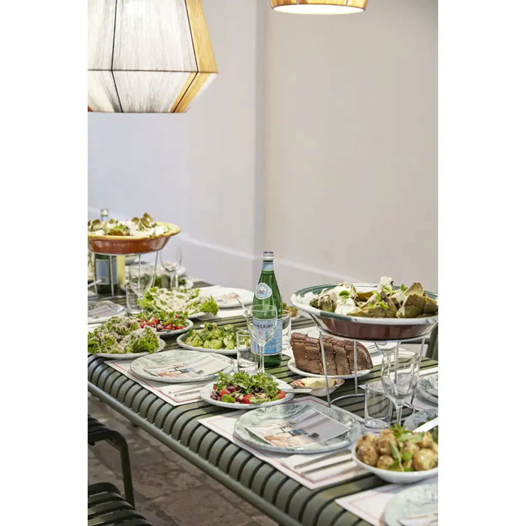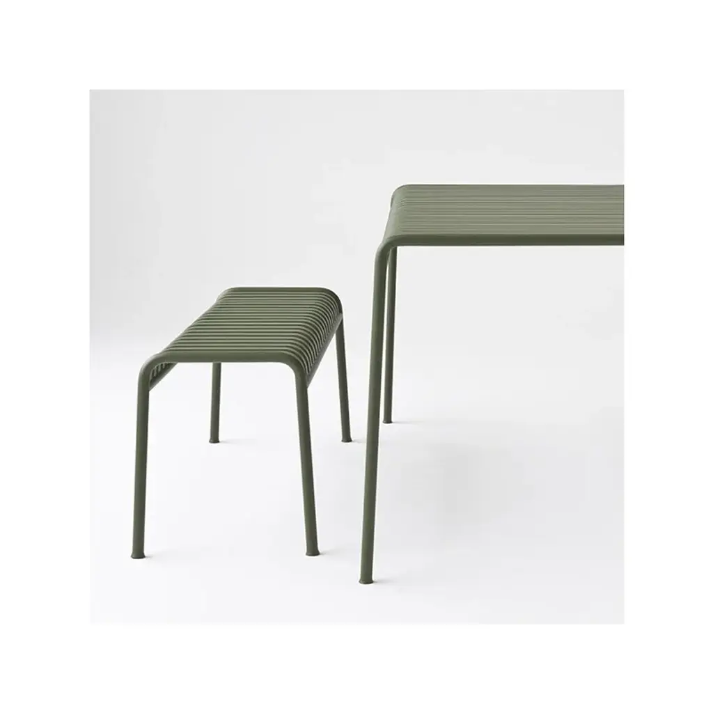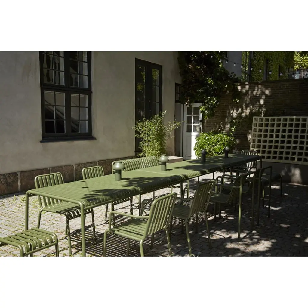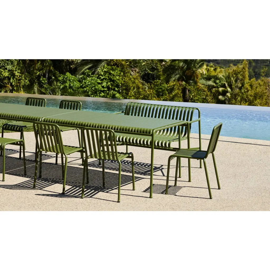 The sleek yet robust Palissade table is a member of HAY’s versatile outdoor furniture collection. Palissade outdoor furniture features a strong, graphic design that consists of simple steel tubes and slats. Ronan and Erwan Bouroullec worked with the collection for two years and created a range of simple, balanced pieces that are well suited for terraces, balconies, gardens, cafés and public spaces. The Palissade chairs, tables and benches are sturdy but elegant, and perfect for outdoor use, since wind and water will pass through the galvanized steel frame. The Palissade furniture was designed to age well and its muted color palette adds to the timeless and versatile appearance.