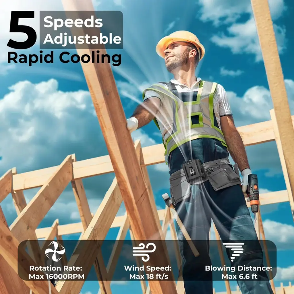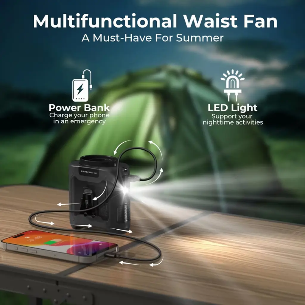 Panergy 10000mah Portable Waist Clip Fan,40h Cooling Personal Wearable Fan,5 Speeds 16000rpm, Rechargeable With Dual Clip & Flashlight - Black