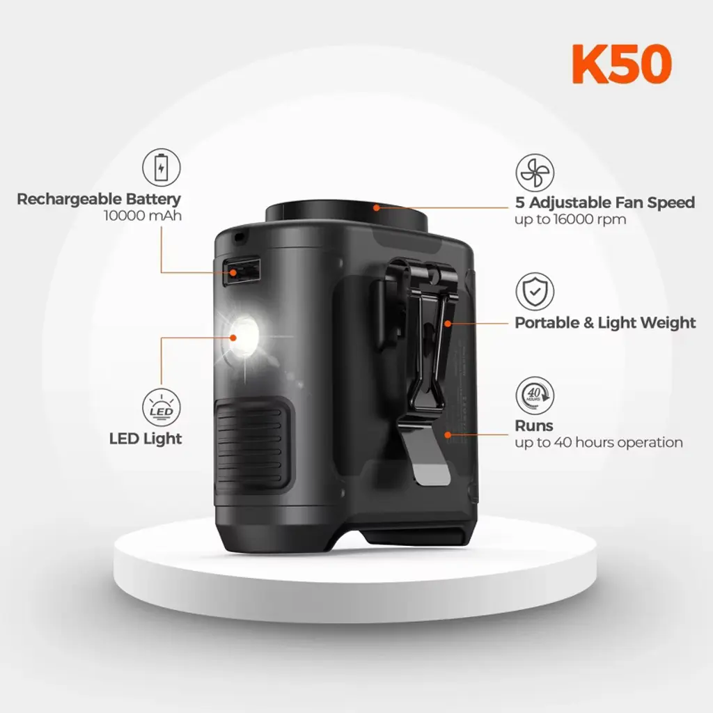 Panergy 10000mAh Portable Waist Clip Fan,40H Cooling Personal Wearable Fan,5 Speeds 16000RPM Belt Fan,Rechargeable Hands-free Neck Fan With Dual Clip & Flashlight