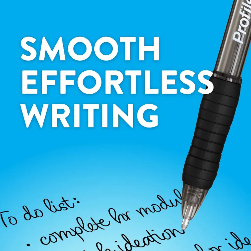 Make smooth, crisp lines with Paper Mate Profile ballpoint pens. These retractable pens now come in a 1.0mm tip, so you can write powerful lines that stand out on the page. Profile pens also include a soft grip for comfortable writing during any writing task and the bright ink create a powerful writing experience.