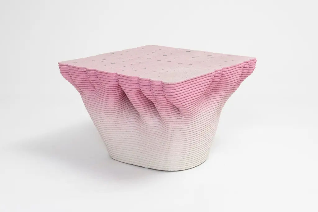 The Paramorph Table continues Philipp Aduatz’s exploration of sculptural form through advanced digital design and additive manufacturing. Produced in small batches with incremental3d, it translates complex, fluid geometries into a functional object that serves equally as a side table and as a sculptural statement piece within contemporary interiors.The base is generated through parametric modeling, resulting in an organic form that would be nearly impossible to realize through traditional casting. Its flowing curves reveal how digital design can unlock new aesthetic and structural possibilities for concrete, giving the material an unexpected sense of movement and lightness.Achieved through precisely controlled pigment dosing, subtle color gradients emphasize the transitions within the geometry and enhance the table’s visual depth. Each piece is 3D-printed from a cement-based material formulated for additive manufacturing, allowing for optimized material use, eliminating the need for molds, and reducing waste.As part of an ongoing, unnumbered studio series, each Paramorph Table is produced to order. Variations in surface texture and color flow are inherent to the process and contribute to the individuality of every piece.