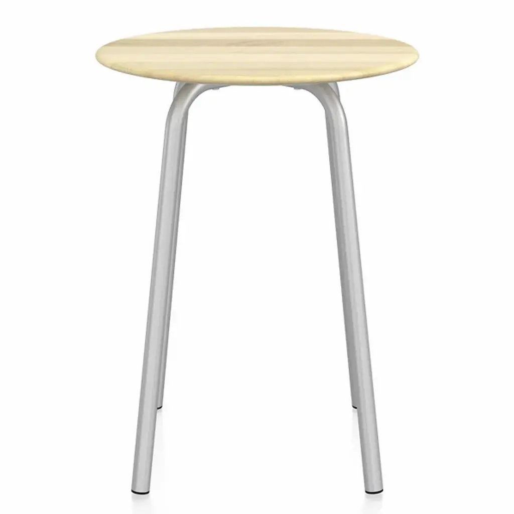 Provide an inspired accompaniment to indoor or outdoor spaces with the Parrish Cafe Round Table from Emeco. An inspired design from the mind of Konstantin Grcic, it was originally designed for the New York Parrish Art Museum and ascends from slim, sustainable recycled aluminum legs, arcing up and over beneath a rounded tabletop. The simple design of the table offsets the complex surroundings of the art museum it was designed for, bringing sculptural simplicity to wherever it is placed.