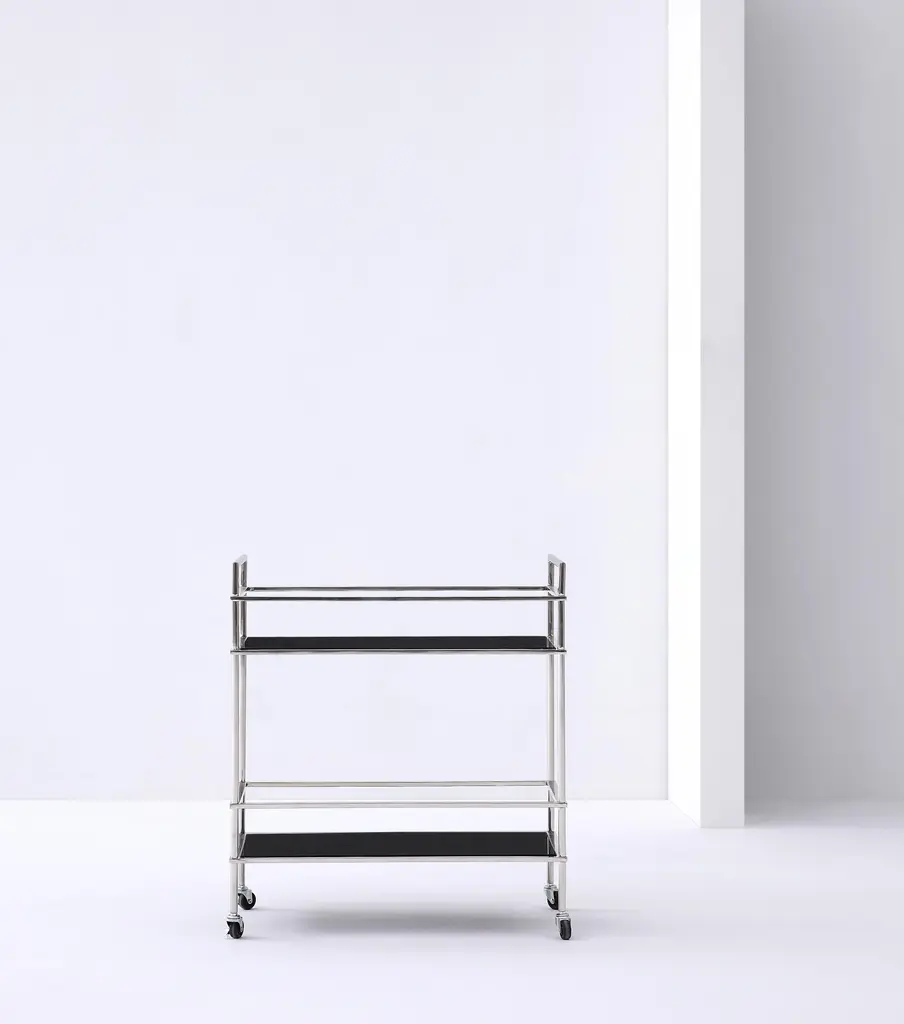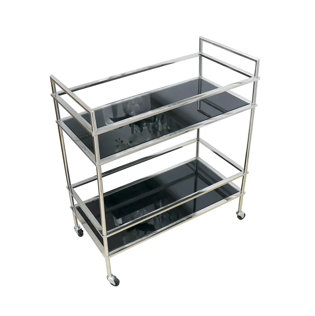 Pasargad Home Luxe Serving Table With Wheels, Black