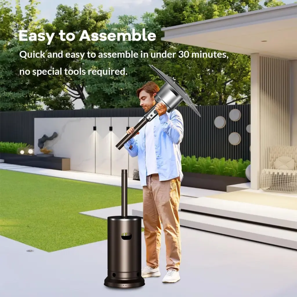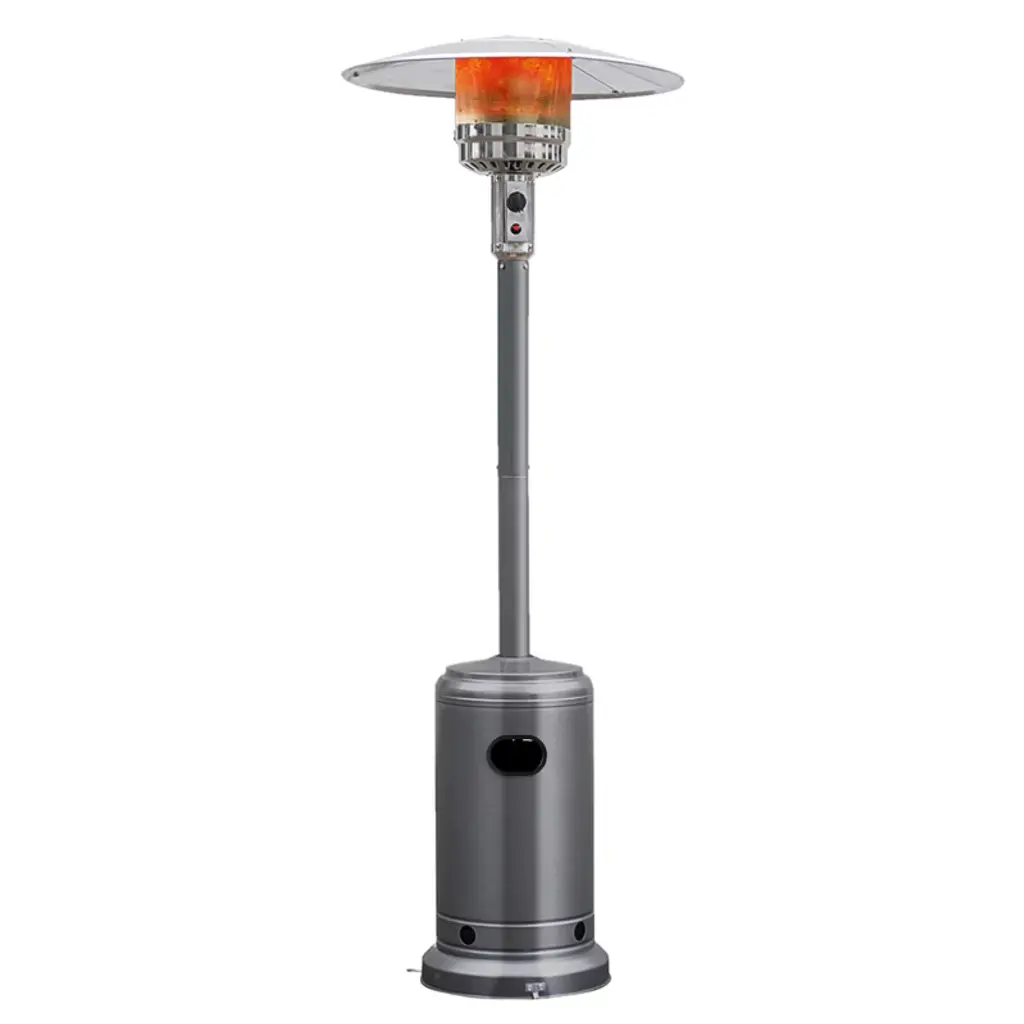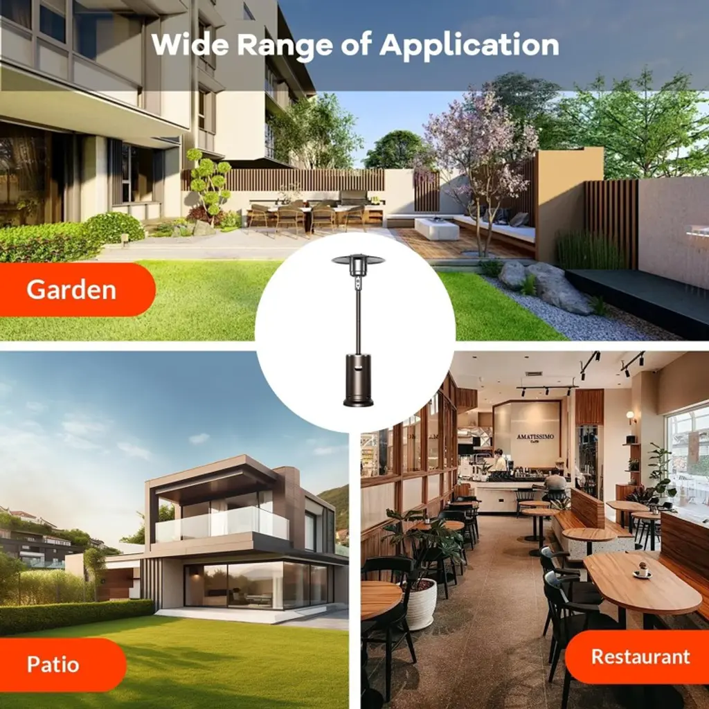 1.48,000 BTU Heating Power: Warmth for 15-Ft Radius & All-Day Gatherings This commercial-grade propane patio heater delivers robust 48,000 BTU heat output¡ªenough to warm a 15-foot radius (comfortably fitting 6¨C8 people) and extend outdoor use into chilly evenings, fall months, or even mild winter days. It runs for 8¨C10 hours on a standard 20-lb propane tank (tank not included), making it perfect for all-day backyard barbecues, evening caf¨¦ patios, or long garden parties without frequent refueling. The double-walled stainless steel construction enhances heat radiation efficiency: the inner layer retains heat to minimize waste, while the outer layer distributes warmth evenly across the space¡ªno hot spots or cold corners, ensuring everyone stays cozy. 2.Double-Layer 304 Stainless Steel: 30% Longer Lifespan & All-Weather Durability Crafted with double-layer 304 stainless steel burner grids and a reinforced frame, this heater stands up to corrosion, rust, and daily wear¡ªeven in humid coastal areas or rainy climates. Unlike single-layer models that thin or warp over time, the double-layer design adds structural strength and heat resistance, boosting its lifespan by 30%. The 304 stainless steel is food-grade and non-reactive, so it won¡¯t degrade from exposure to outdoor elements (sun, rain, snow) or propane fumes. This durability makes it ideal for both residential use (year-round patio heating) and commercial settings (busy restaurant patios, event venues) where reliability is critical. 3.Intuitive Controls: 3-Second Ignition & Easy Temperature Tuning Designed for hassle-free use, the heater features a user-friendly control knob that lets you adjust heat output precisely¡ªfrom low (for mild chills) to high (for colder nights), so you can tailor warmth to your comfort. Its one-touch ignition system lights the flame in just 3 seconds¡ªno fumbling with matches or lighters, even with gloves on. A unique ¡°bucket-hole¡± design on the heater body provides easy access to the gas valve: you can turn the propane supply on/off or adjust it without disassembling any parts, saving time and frustration during setup or refueling. 4.Triple Safety Protection: Tilt & Flame-Out Guards for Peace of Mind Safety is prioritized with two key protective systems:Tip-over protection: If the heater tilts more than 45 degrees (e.g., from a strong wind or accidental bump), it automatically cuts the gas supply and extinguishes the flame¡ªpreventing fires or gas leaks. Flame-out protection: If the flame is accidentally blown out (by wind) or otherwise extinguished, the system shuts off gas flow instantly, eliminating the risk of unburned propane escaping. These features make the heater safe for families with kids/pets, busy commercial spaces, or windy outdoor areas¡ªletting you enjoy warmth without worrying about accidents. 5.Portable & Multi-Functional: Easy Setup & Space-Saving Design Assembly is a breeze: the heater comes with just three main parts and anti-loosening screws, and most users can put it together in under 30 minutes using the included instructions (no specialized tools needed). Smooth-rolling wheels on the base let you move it effortlessly¡ªslide it from the patio to the deck, or from a storage shed to the garden, without lifting heavy parts. The flat lid of the propane tank compartment doubles as a convenient snack or drink tray: set down cups, plates, or condiments to keep essentials within reach during gatherings, maximizing space and practicality.