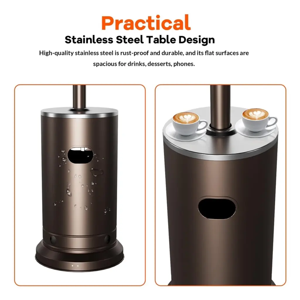 Patio Heater- 48,000 Btu With Wheels & Round Table Design, Double-layer Stainless Steel Burner, Tip-over Protection