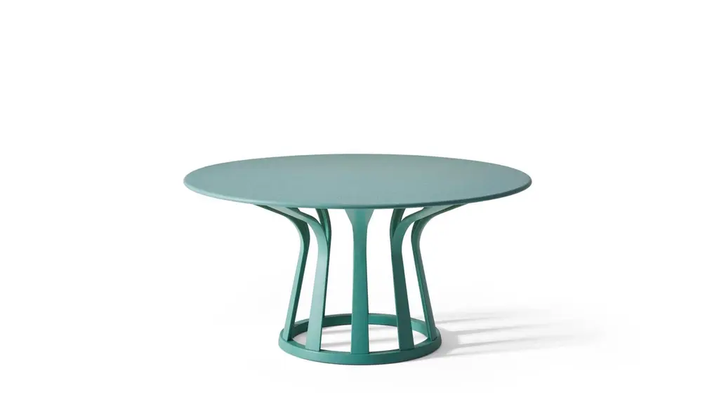 Patrick Jouin Lebeau Outdoor table For CassinaA round table with an architectural flourish: sophisticated, intricate and with a flair for drama. Following the first model in 2003 and the wood version in 2017, Lebeau goes outdoors with an aluminium version that reflects the same distinctive design and iconic silhouette.The graceful balance of positive and negative space, leitmotif of this series of tables, is also found in this new model, thanks to the Cassina expertise in processing materials and its creative interpretive and expressive prowess.The updated design reduces the number of staves to ten, curved to create the effect of a flower as it blooms. The tubular sections get thinner toward the centre, creating an enchanting visual interplay as the light passes through them.STRUCTUREIn cast aluminium, painted in embossed ivory, green or mud colour.TOPIn matte glazed ceramic, in ivory, green or mud colourThe first project of French designer Patrick Jouin for Cassina in 2003, the iconic, innovative Lebeau table was reinterpreted in 2017 in a tactile version with base in solid ash. Its fluid organic shape, achieved through a lengthy, meticulous process of curving and assembling the staves, was accomplished through the extraordinary ability and expertise of the Cassina joinery, which combined high-technology and artisan craftsmanship to produce a lightweight, sculptural architecture that blossoms like a flower. Today, Lebeau Outdoor continues on this evolving technical and aesthetic journey with a new version suited to outdoor living. It maintains the expressive originality of its archetype through the use of a material selected for its durability, light weight and long life: aluminium.Based on painstaking structural research, the table retains its iconic silhouette but with an updated design in which the number of staves is pared down from 22 to ten. Crafted in cast aluminium, their exquisite workmanship is especially noticeable in the ten veins that the designer intentionally left exposed inside the staves. In a crescendo of proportions, this architectural structure branches out from the central column with staves that become thinner as they converge toward the centre, creating an enchanting visual symphony as light passes through them.A lively dialogue between the tactility of the materials and the combination of expressive colours.Important information regarding color(s) of products:Actual colors may vary. This is due to the fact that every computer monitor, laptop, tablet and phone screen has a different capability to display colors and that everyone sees these colors differently. We try to edit our photos to show all of our products as life-like as possible, but please understand the actual color may vary slightly from your monitorAbout The Designer: Patrick Jouin was born in Nantes in 1967, and received his diploma at Ensci-les Ateliers in 1992. He worked as designer for the Wagons-Lits company and in 1993 began a short collaboration with a company producing television sets, under the artistic direction of Philippe Starck, in whose studio he went on to work until 1999. Jouin has produced designs under his own name since 1998; chairs, sofas and beds, an automobile design and stands for various motor shows, in collaboration with Imaad Rahmouni. Working with Alain Ducasse, the famous French chef, brought him into the international limelight. Jouin designed the interiors and furnishings of restaurants in Paris and New York For Cassina, he designed a set of products (table, chairs, sofa and accessories) which was shown at the Cologne Furniture Fair in 2003.About The Manufacturer:Established in 1927 by Cesare and Umberto Cassina in Meda, Italy, Cassina launched industrial design in Italy in the 1950s, based on a totally innovative approach that marked the transition from artisan production to mass production. With a mindset focused on research and innovation, Cassina combines technology and long-standing artisan craftsmanship. Memory, research, innovation. Cassina blends traditional skills and superior productivity, meticulous attention to detail and passion, uniqueness and experimentation, wellbeing and sustainability. Today, the company continues to address new lifestyles with the creation of complete, harmonious interior decor solutions that embody the best contemporary design for all areas of the home.
