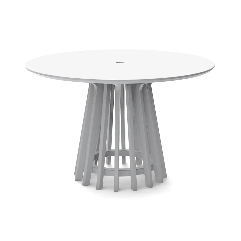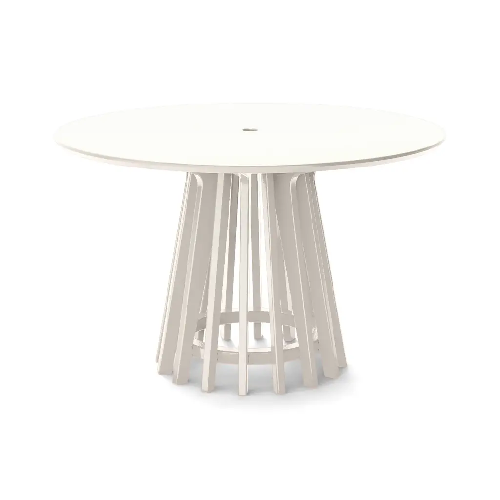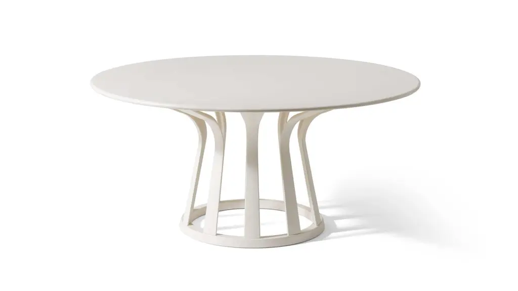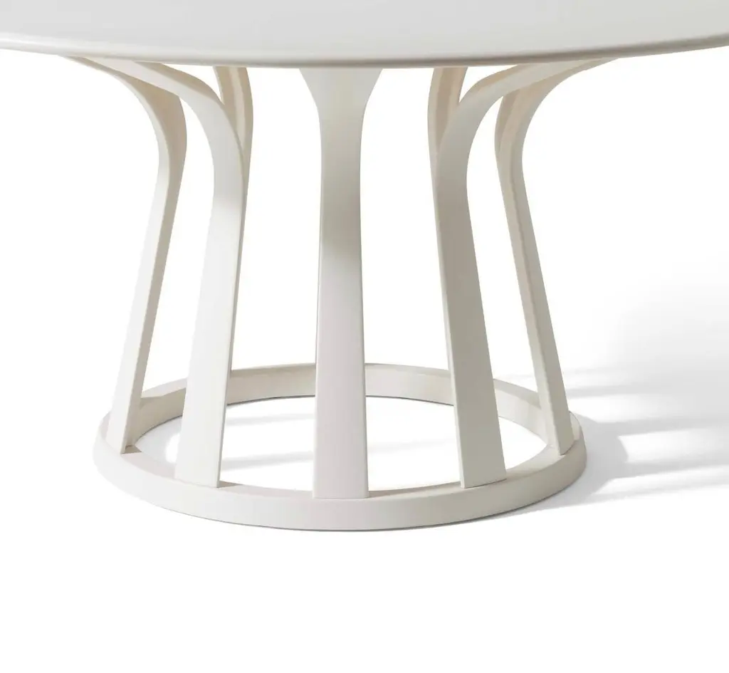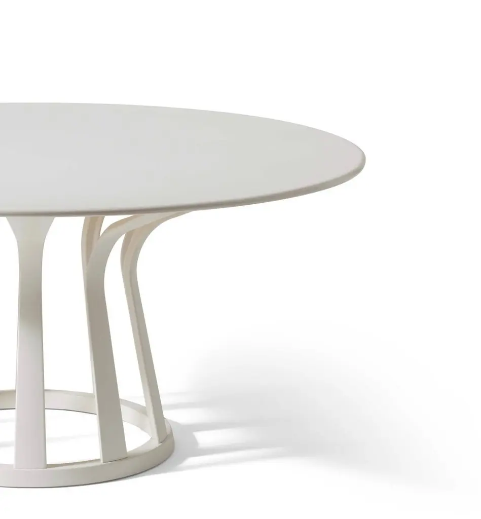 Patrick Jouin Lebeau Outdoor table For CassinaA round table with an architectural flourish: sophisticated, intricate and with a flair for drama. Following the first model in 2003 and the wood version in 2017, Lebeau goes outdoors with an aluminium version that reflects the same distinctive design and iconic silhouette.The graceful balance of positive and negative space, leitmotif of this series of tables, is also found in this new model, thanks to the Cassina expertise in processing materials and its creative interpretive and expressive prowess.The updated design reduces the number of staves to ten, curved to create the effect of a flower as it blooms. The tubular sections get thinner toward the centre, creating an enchanting visual interplay as the light passes through them.STRUCTUREIn cast aluminium, painted in embossed ivory, green or mud colour.TOPIn matte glazed ceramic, in ivory, green or mud colourThe first project of French designer Patrick Jouin for Cassina in 2003, the iconic, innovative Lebeau table was reinterpreted in 2017 in a tactile version with base in solid ash. Its fluid organic shape, achieved through a lengthy, meticulous process of curving and assembling the staves, was accomplished through the extraordinary ability and expertise of the Cassina joinery, which combined high-technology and artisan craftsmanship to produce a lightweight, sculptural architecture that blossoms like a flower. Today, Lebeau Outdoor continues on this evolving technical and aesthetic journey with a new version suited to outdoor living. It maintains the expressive originality of its archetype through the use of a material selected for its durability, light weight and long life: aluminium.Based on painstaking structural research, the table retains its iconic silhouette but with an updated design in which the number of staves is pared down from 22 to ten. Crafted in cast aluminium, their exquisite workmanship is especially noticeable in the ten veins that the designer intentionally left exposed inside the staves. In a crescendo of proportions, this architectural structure branches out from the central column with staves that become thinner as they converge toward the centre, creating an enchanting visual symphony as light passes through them.A lively dialogue between the tactility of the materials and the combination of expressive colours.Important information regarding color(s) of products:Actual colors may vary. This is due to the fact that every computer monitor, laptop, tablet and phone screen has a different capability to display colors and that everyone sees these colors differently. We try to edit our photos to show all of our products as life-like as possible, but please understand the actual color may vary slightly from your monitorAbout The Designer: Patrick Jouin was born in Nantes in 1967, and received his diploma at Ensci-les Ateliers in 1992. He worked as designer for the Wagons-Lits company and in 1993 began a short collaboration with a company producing television sets, under the artistic direction of Philippe Starck, in whose studio he went on to work until 1999. Jouin has produced designs under his own name since 1998; chairs, sofas and beds, an automobile design and stands for various motor shows, in collaboration with Imaad Rahmouni. Working with Alain Ducasse, the famous French chef, brought him into the international limelight. Jouin designed the interiors and furnishings of restaurants in Paris and New York For Cassina, he designed a set of products (table, chairs, sofa and accessories) which was shown at the Cologne Furniture Fair in 2003.About The Manufacturer:Established in 1927 by Cesare and Umberto Cassina in Meda, Italy, Cassina launched industrial design in Italy in the 1950s, based on a totally innovative approach that marked the transition from artisan production to mass production. With a mindset focused on research and innovation, Cassina combines technology and long-standing artisan craftsmanship. Memory, research, innovation. Cassina blends traditional skills and superior productivity, meticulous attention to detail and passion, uniqueness and experimentation, wellbeing and sustainability. Today, the company continues to address new lifestyles with the creation of complete, harmonious interior decor solutions that embody the best contemporary design for all areas of the home.