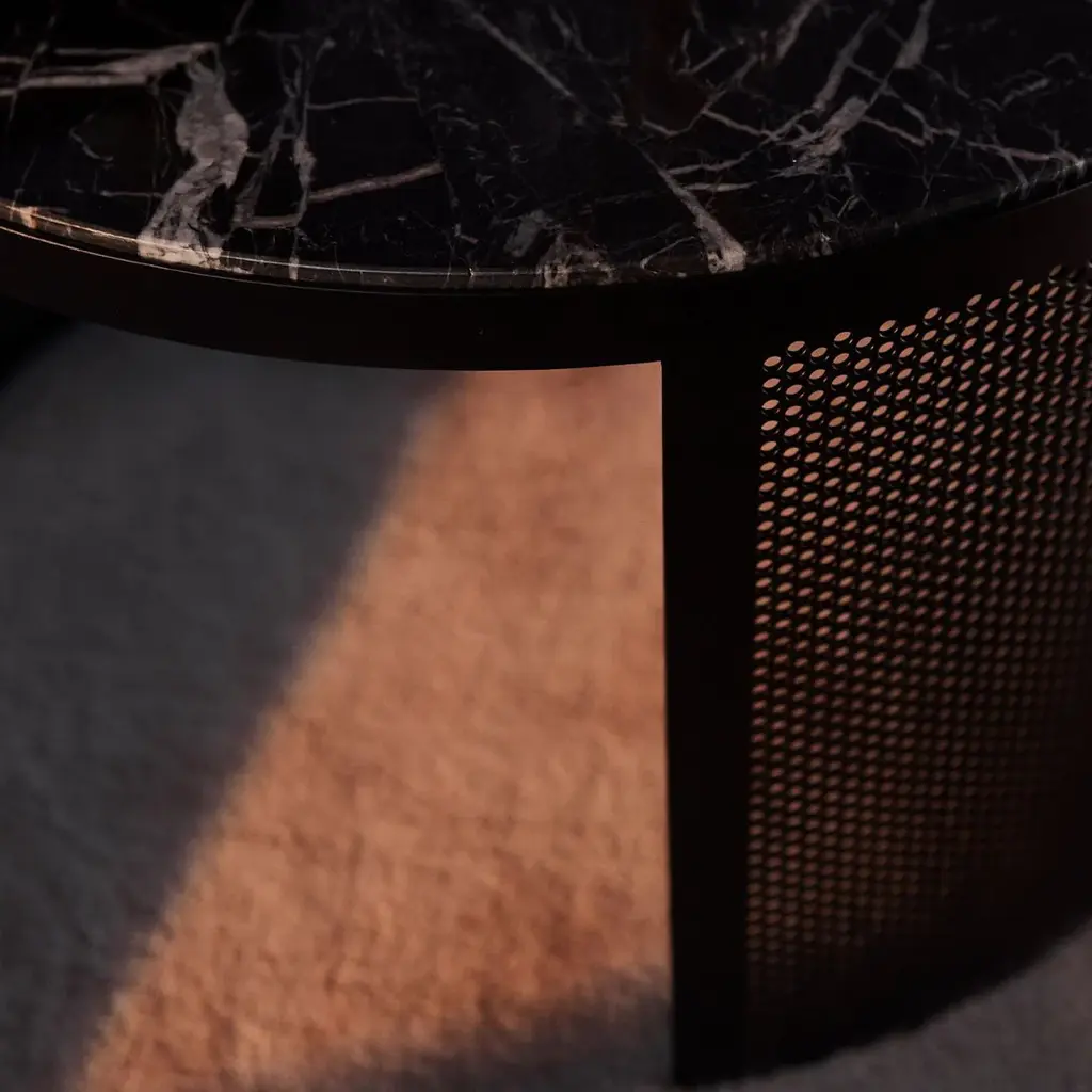 The Pausillus tables can be placed in any room that calls for extra creative space. They are made of perforated metal in black and have either a high quality marble or walnut wooden top. Pausillus are made for that special corner of the home that is sacred to you, where you can relax with a good book and a snack.