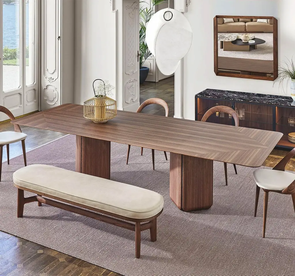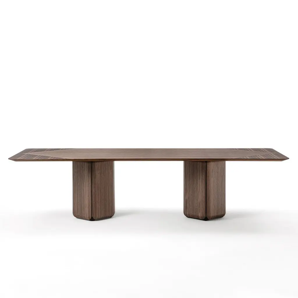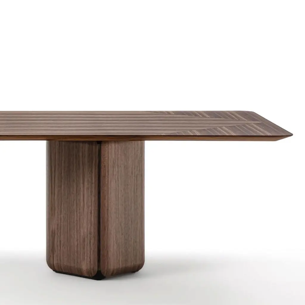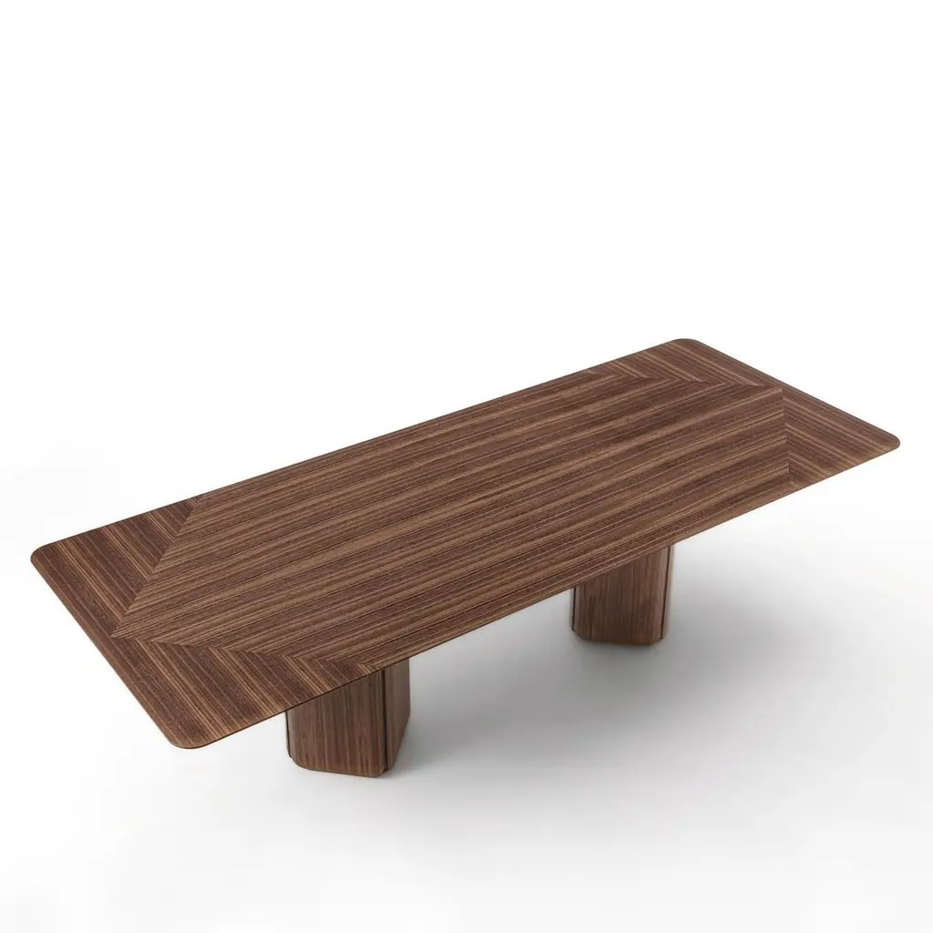 Rectangular Table Walnut Pax with two solid walnutbase. With a solid walnut topAlso available on request with solid walnut base in stained inmoka finish or in wenge finish.Also available on request with plate in glass or marble includingup-charge.
