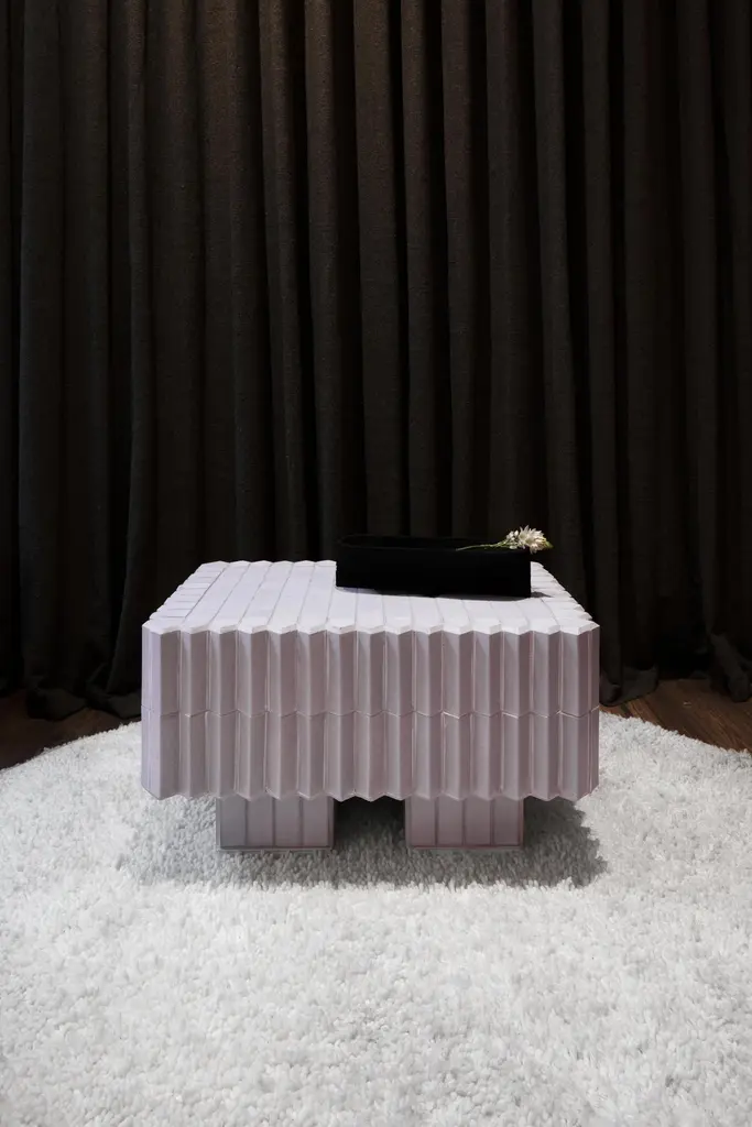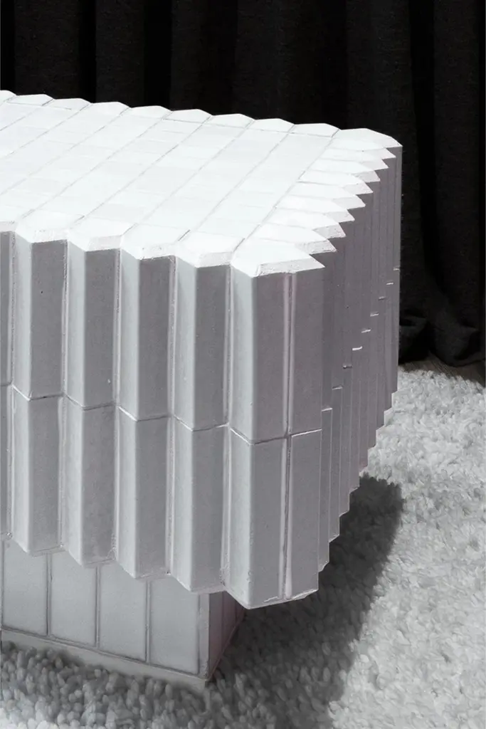 Pedestal Coffee Table by Txt.UrePerla ValtierraDimensions: W 83 x D 57 x H 50 cmMaterials: Ceramic Exterior/Interior Coffee Table, Perla Valtierra Ceramic Tiles, Wood interior structure, Epoxic PasteWeight: 49 kgAlso Available: Plastic Wheels upon requestThis new series comprises three pieces that play with the idea of alluding to Mexican prehispanic heritage through their corporeal volumetric proposal. Pedestal honors tradition subtly and playfully while enclaving in Mexican Contemporary Design.Their primary function is to make a statement inside a room, moving ahead of the idea that a pedestal needs to be neutral, a display piece that blends with its environment. On the contrary, the Pedestal series pieces are thought to be seen while enhancing works of art such as sculptures, vases, and any other decorative objects that furnish the most thoughtful interiors.