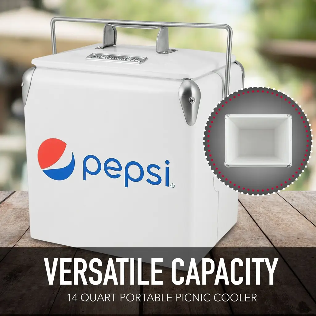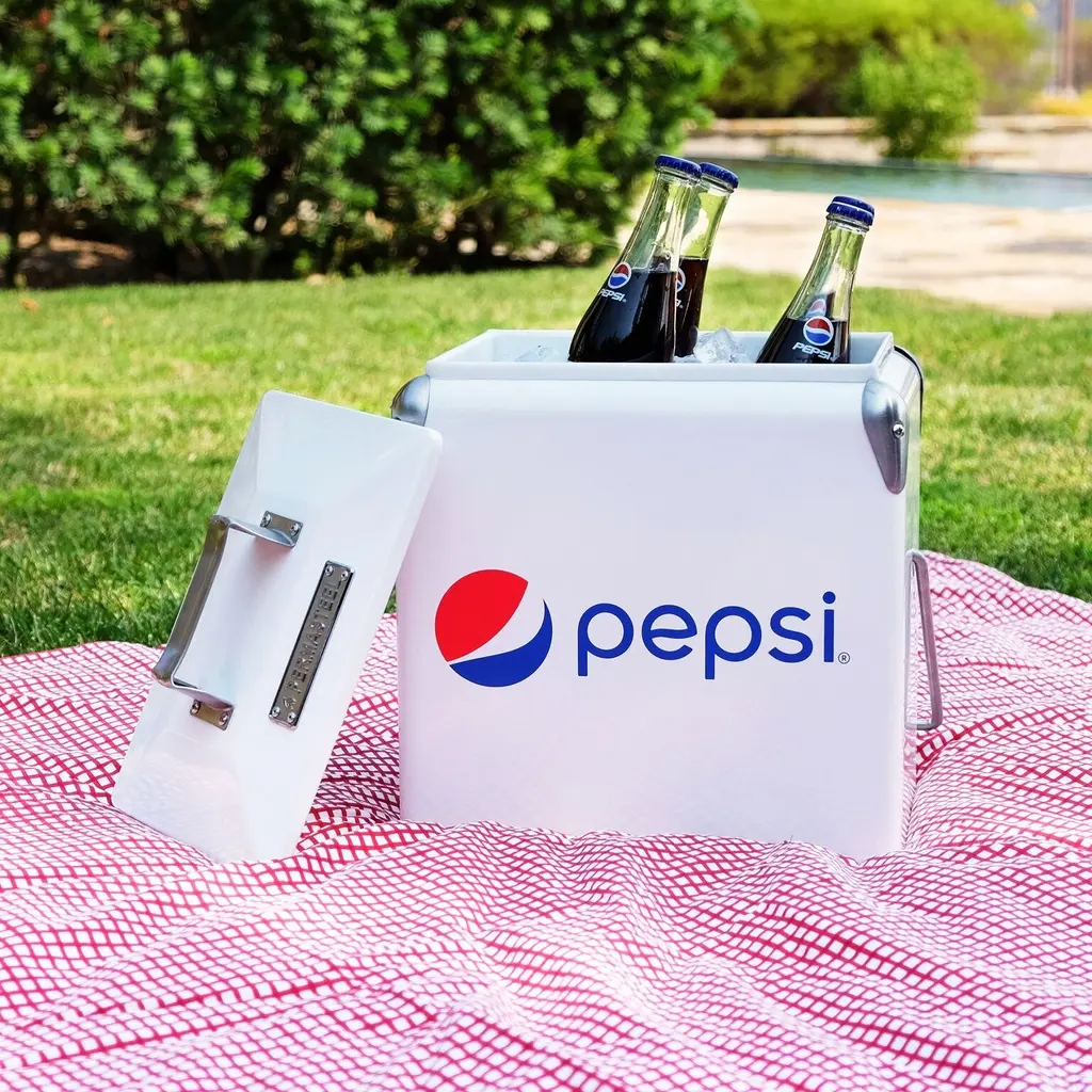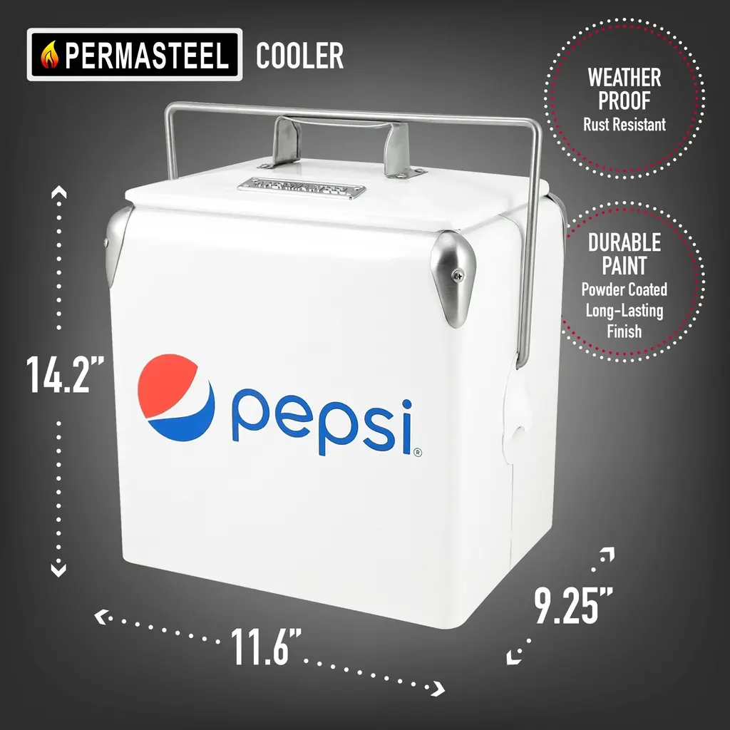 Permasteel 14-Qt Small Portable Cooler In White With Pepsi Logo - White