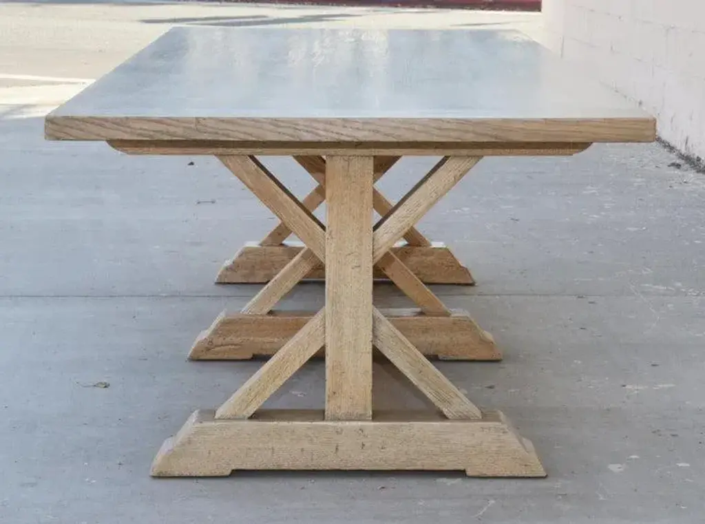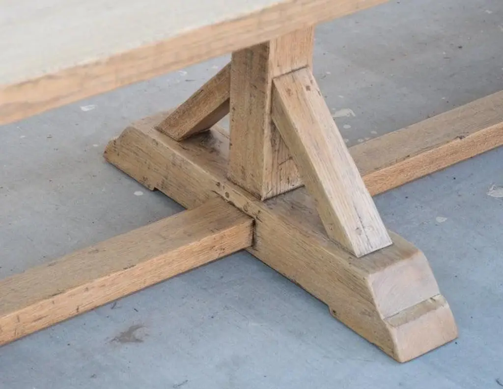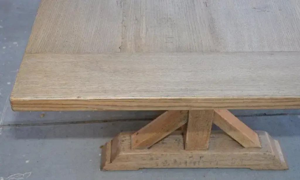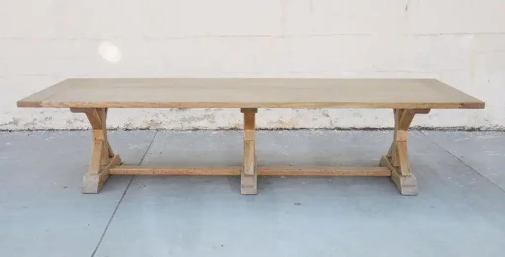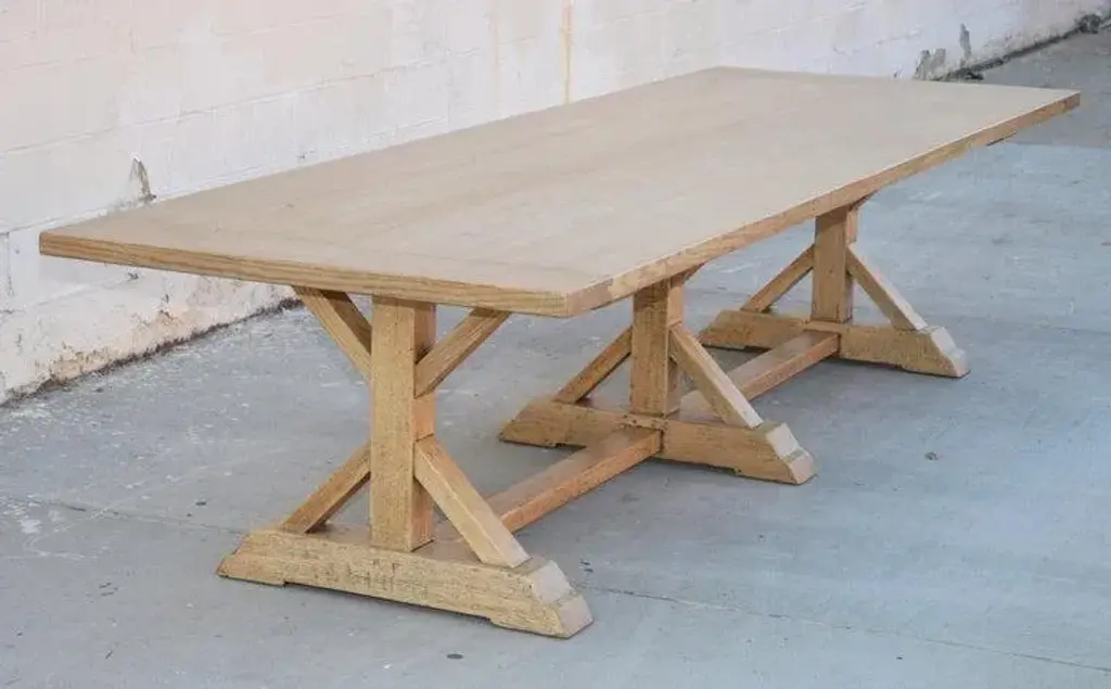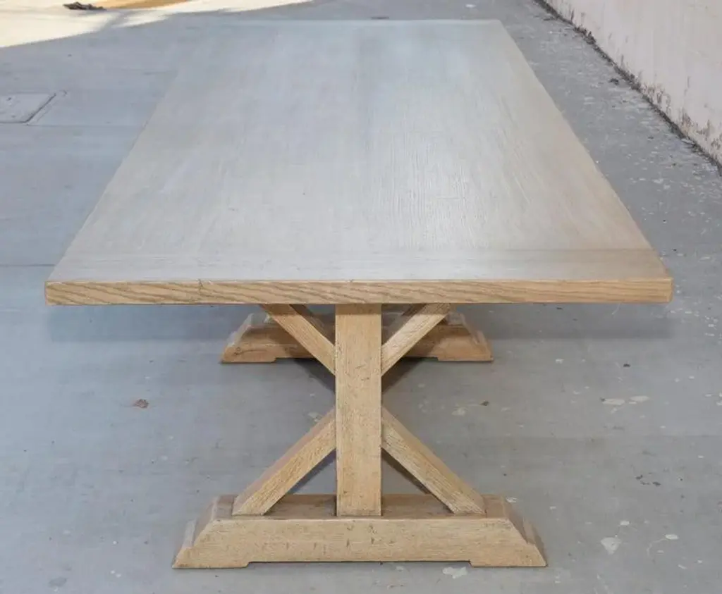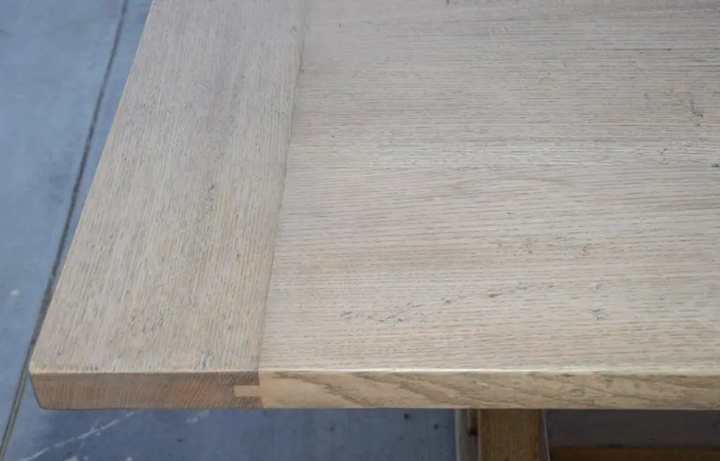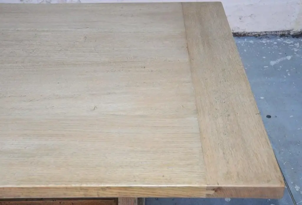 This oak farm table is seen here in 132" x 44". Each table is bench-made in our own Los Angeles workshop. We use only traditional carpentry techniques, mortise and Tenon construction reinforced with handcut wooden dowels. No nails or metal fasteners of any kind are used!