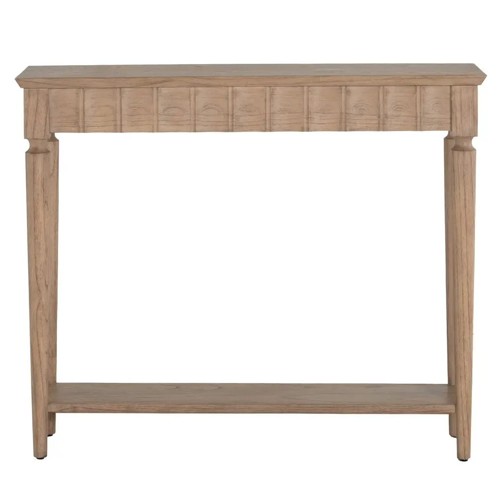 The Peterson Console is a sleek, slim design, perfect for narrow spaces or hallways where style and functionality are needed. Featuring a unique ribbed design along the sides and a convenient storage shelf, this console adds subtle sophistication to any area. Crafted from durable materials, it blends effortlessly into a variety of interiors, making it an ideal filler piece for spaces that need a refined yet simple touch.