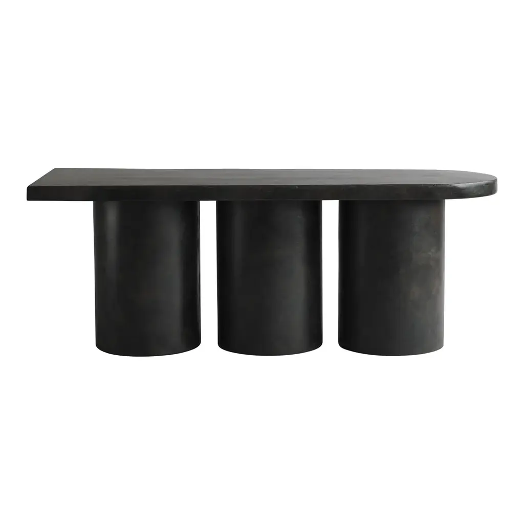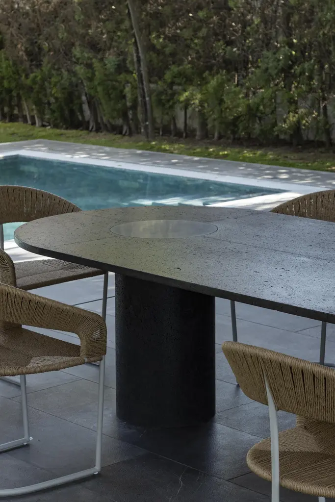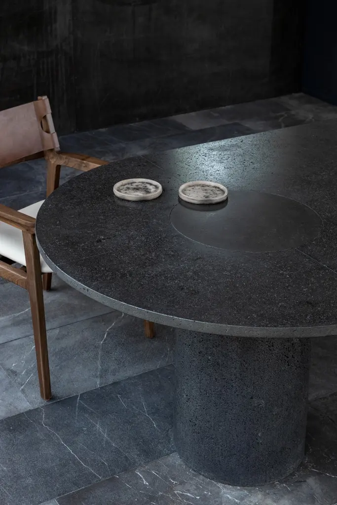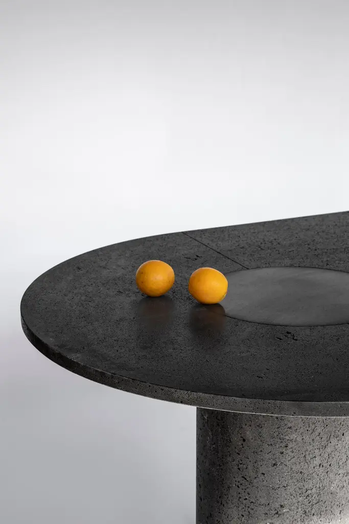Our reverence towards the sumptuousness of volcanic stone has led us to honor this noble material with a table/sculpture whose rich, porous top sits on top of three cylindrical monoliths born from the whims of Mexico's volcanic terrain.Etched lines run through the surface of PETRA's top, guiding the eye towards the three soft and inviting polished discs that flow from the monoliths underneath, telling the story of their origin. PETRA calls to the mysteries of nature and their sacred play in our day to day lives and pleasures.DesignCaterina MorettiTechnical dataMaterial: Volcanic StoneMeasurements: 250 cm x 120 cm x 75 cm.