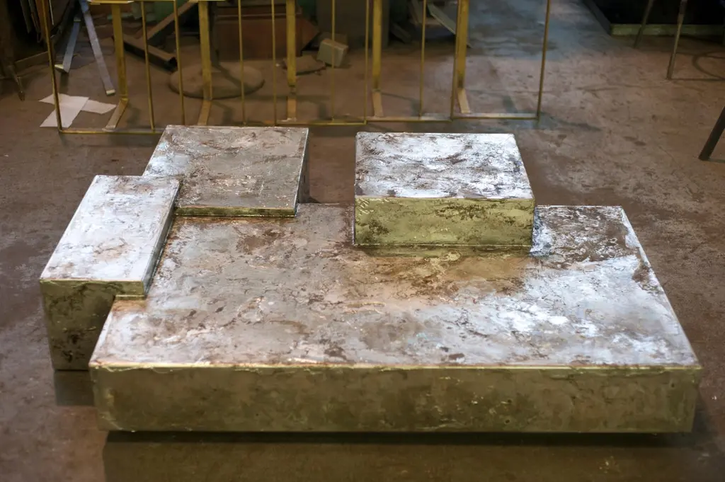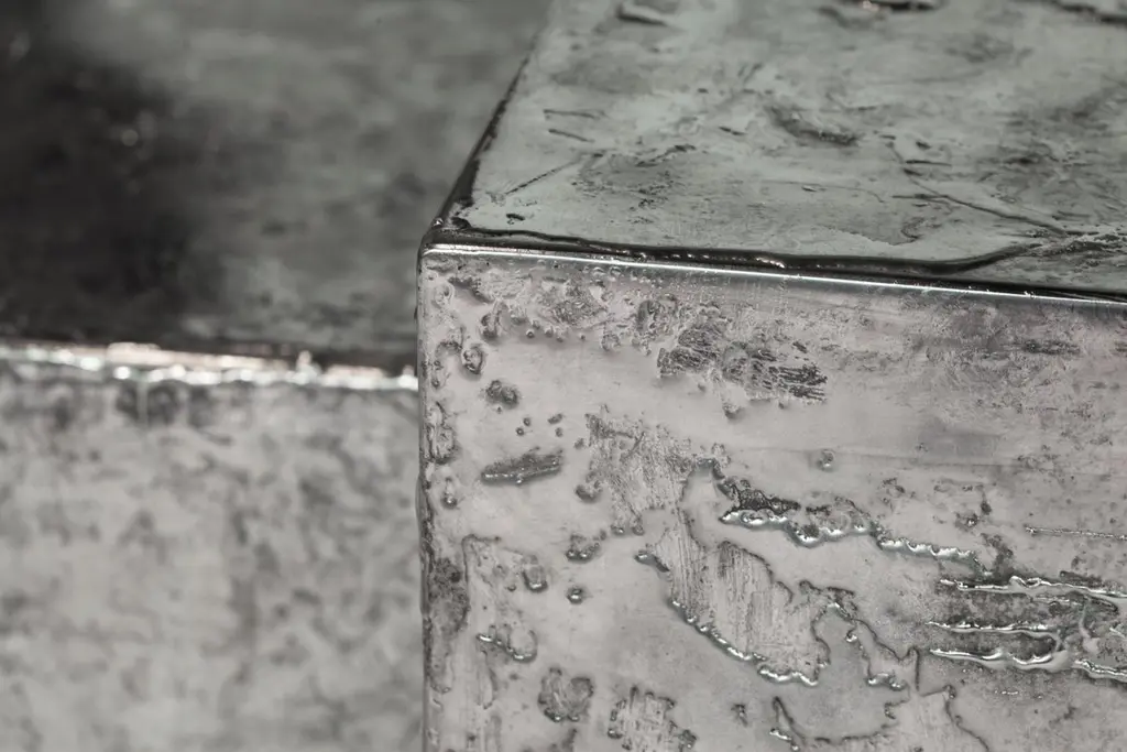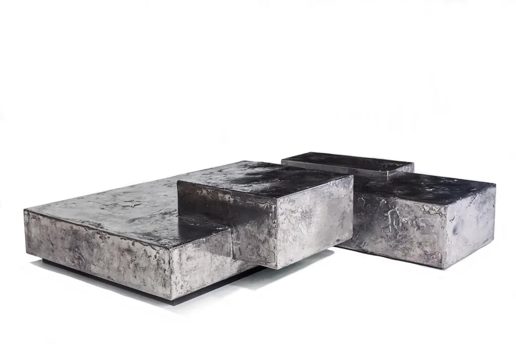 Pewter landscape table by Gentner DesignDimensions: D 138.5 x W 123 x H 33 cmMaterials: pewter on steel.The Pewter Collection is a family of furniture pieces defined by their materiality and formal qualities. One crucible at a time, pewter is melted into liquid form and hand coated onto the steel structure, creating the other-worldly surface that makes each handcrafted pewter table unique. Through its manifestation of conceptual thought and dream like movements expressed through Christopher’s knowledge of materials and craftsmanship. The material finish on each piece turns into a creation unlike any other, embodying the surface of a lunar landscape and a one-of-a-kind sculpture.Gentner DesignRooted in a language of sculpture, character defining details, and world renowned craftsmanship, the work is found at the crossroads of design and art.Established in 2011, the namesake furniture label is a rare combination of aesthetic dexterity and mastery of craft resulting in furniture and objects that are expressive, formal, and transcend materiality.The collection is based in metal and incorporates only natural materials such as leather, wood, and glass in unique ways, challenging our assumptions.Christopher GentnerChristopher Gentner, with a BFA in metalsmithing from the Cleveland Institute of Art and apprenticeships under sculptors and jewelers, together with dedication to craft, quickly developed his reputation nationally as a foremost authority of metal fabrication and furniture.One of his crowning achievements was the re-creation and fabrication of the Frank Lloyd Wright Robie House gates.These unique experiences are the foundation of his design philosophy which he employs in his own line of furniture, lighting, and objects.