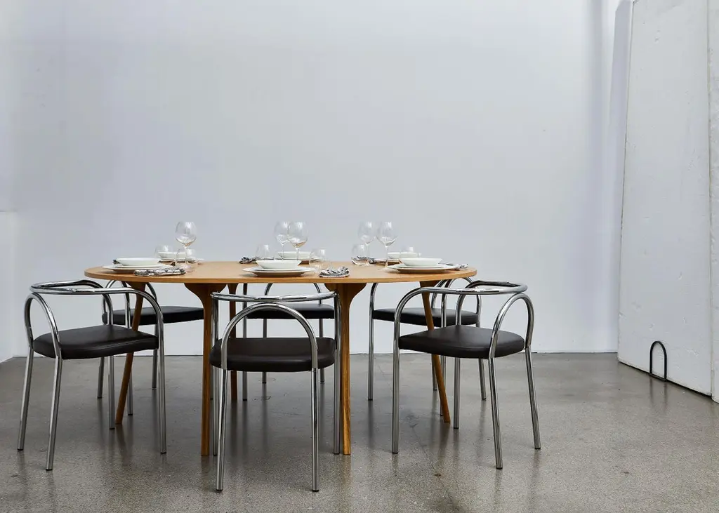 Ph Circle Table, 1270x1820mm, Natural Oak Wood Legs, Veneer Table Plate And Edge