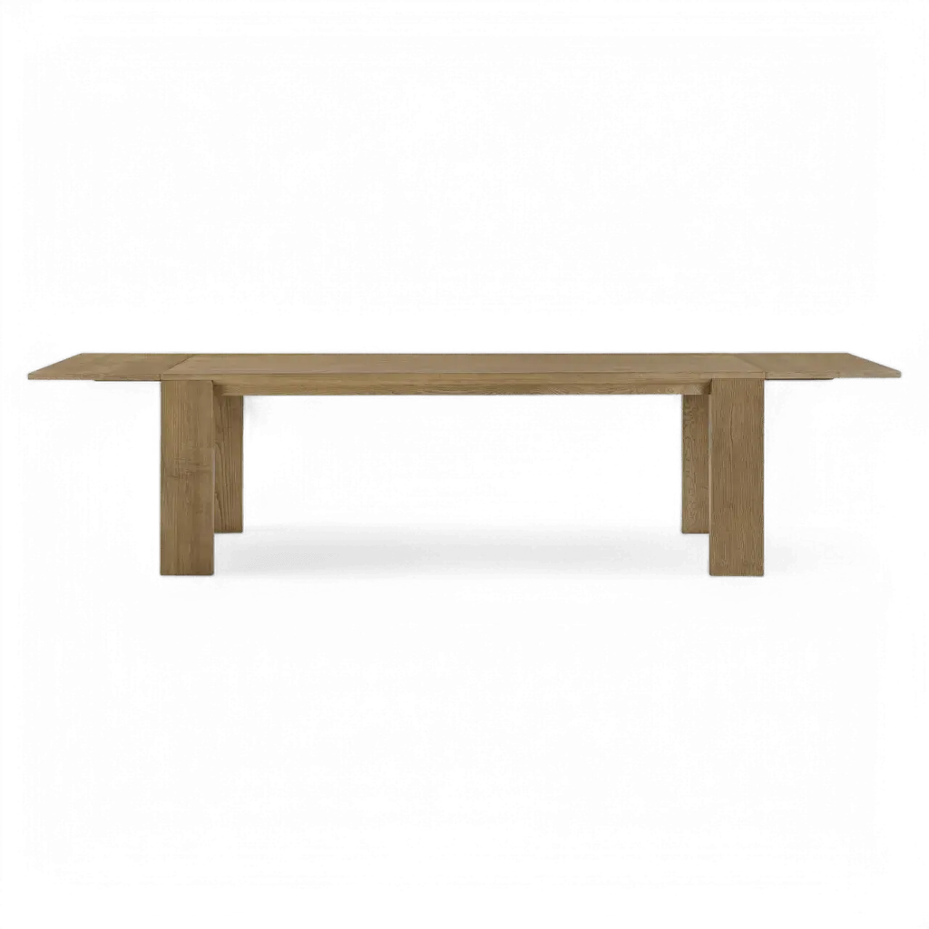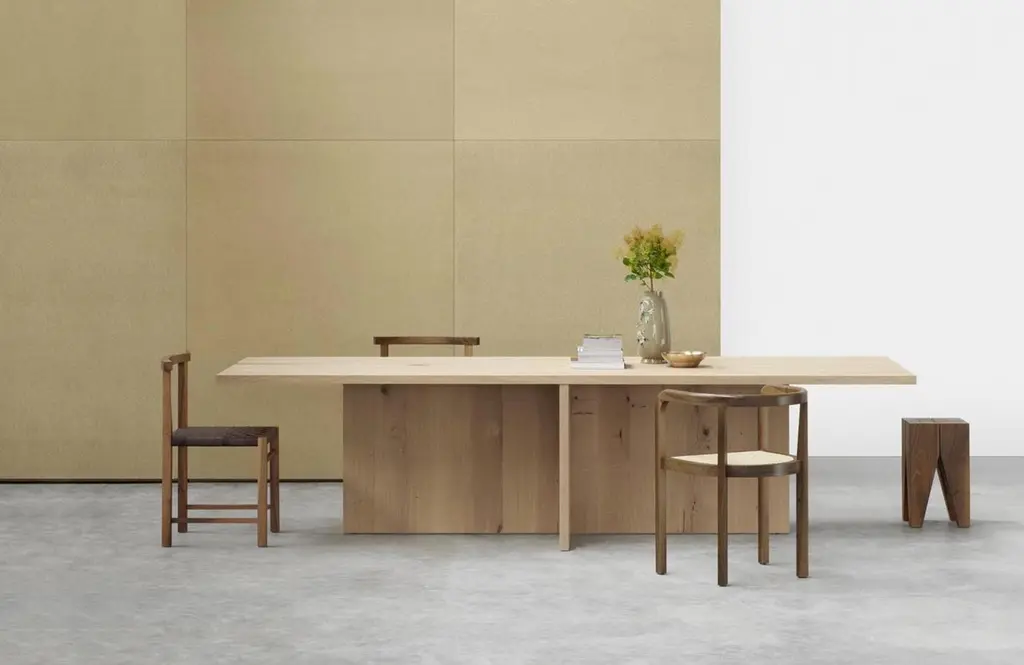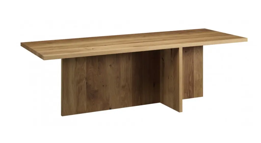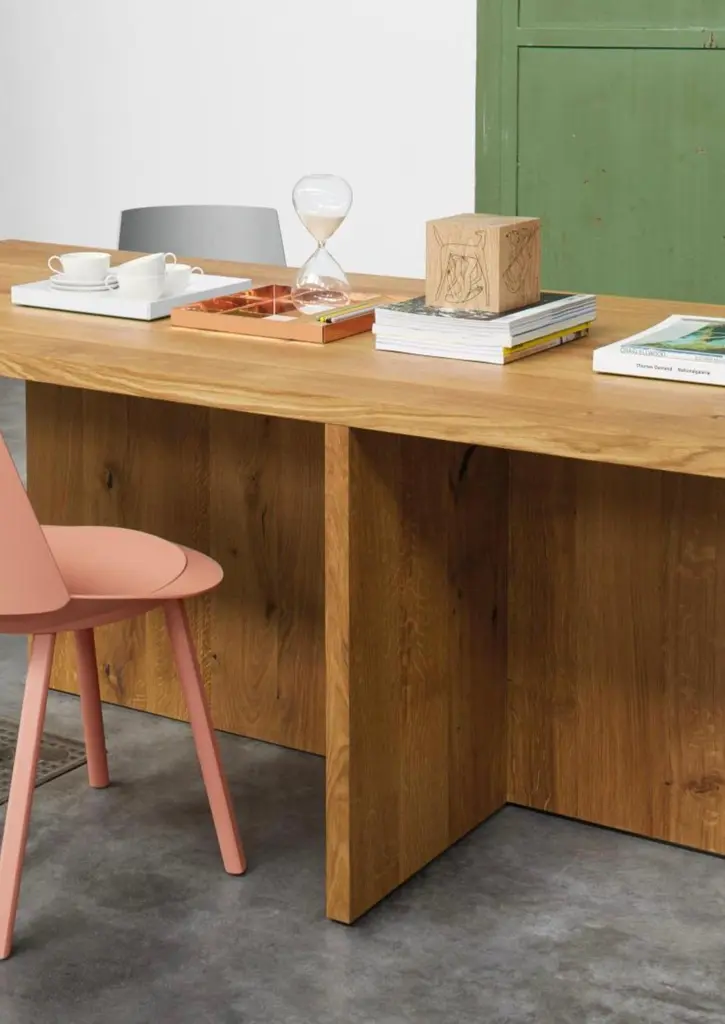 Philipp Mainzer 'ZEHN' Table 240cm in Solid European Oak for e15.New, current production.With a sculptural appearance, the solid wood table ZEHN presents essential geometric forms in striking simplicity.This product is available in the following variants:European oak, oiledEuropean oak, white pigmented lacqueredEuropean oak, chocolate brown stainedEuropean oak, dark stainedDetails- Thickness of solid wood top measures 40 mm (1 5/8 inch)- To maximize seating comfort, the middle leg is either centrally (L 3000 mm / 118 1/8 inch) or asymmetrically (L 2400 mm / 94 1/2 inch) positioned- Offers seating for eight to ten people- Ideally complemented by chairs HOUDINI, THIS- Delivered as four pieces- To maintain oiled or waxed wood surfaces, suitable care products are included in the delivery.Please note: the price is for a ZEHN table in length 240cm (there is also a version in 300 cm available)About DEZAAK DELUXEAt DEZAAK DELUXE we try to find items that are out of the ordinary. With experience over 40 years, we are known for our singular eye and combining the new and the old. We have a few thousand items in stock in our beautiful showroom in a reclaimed factory building out of the 1930s.
