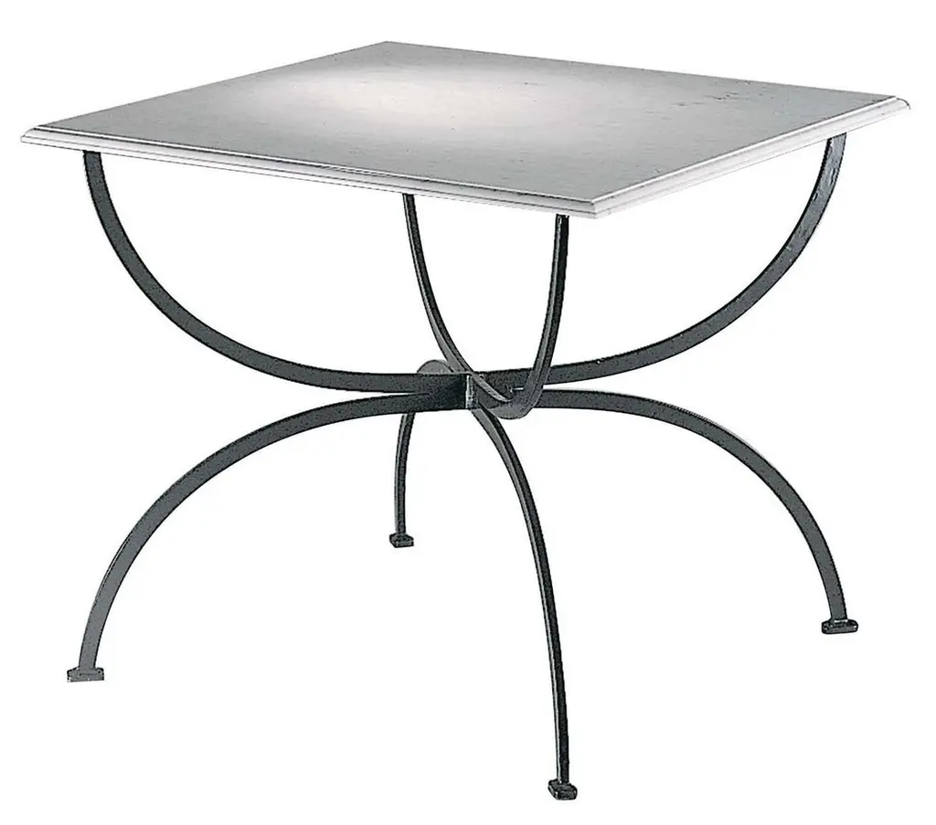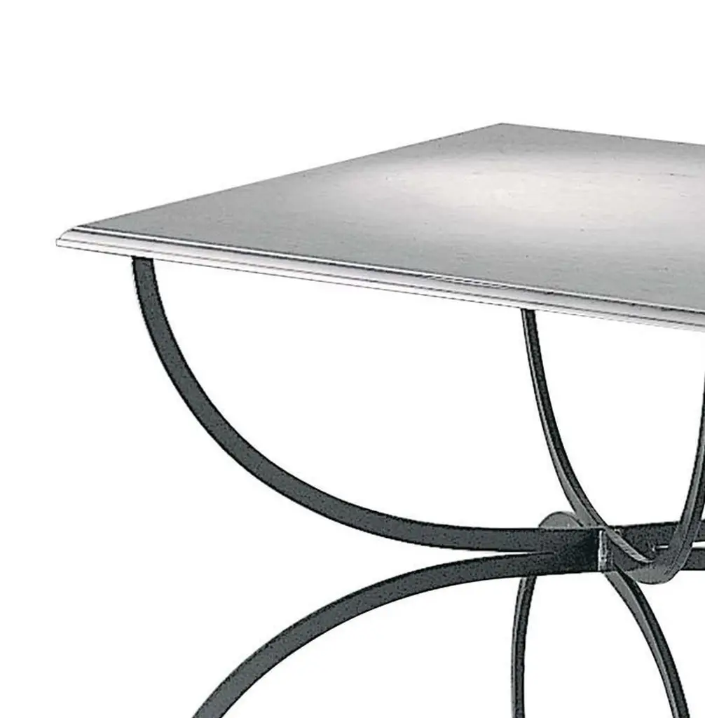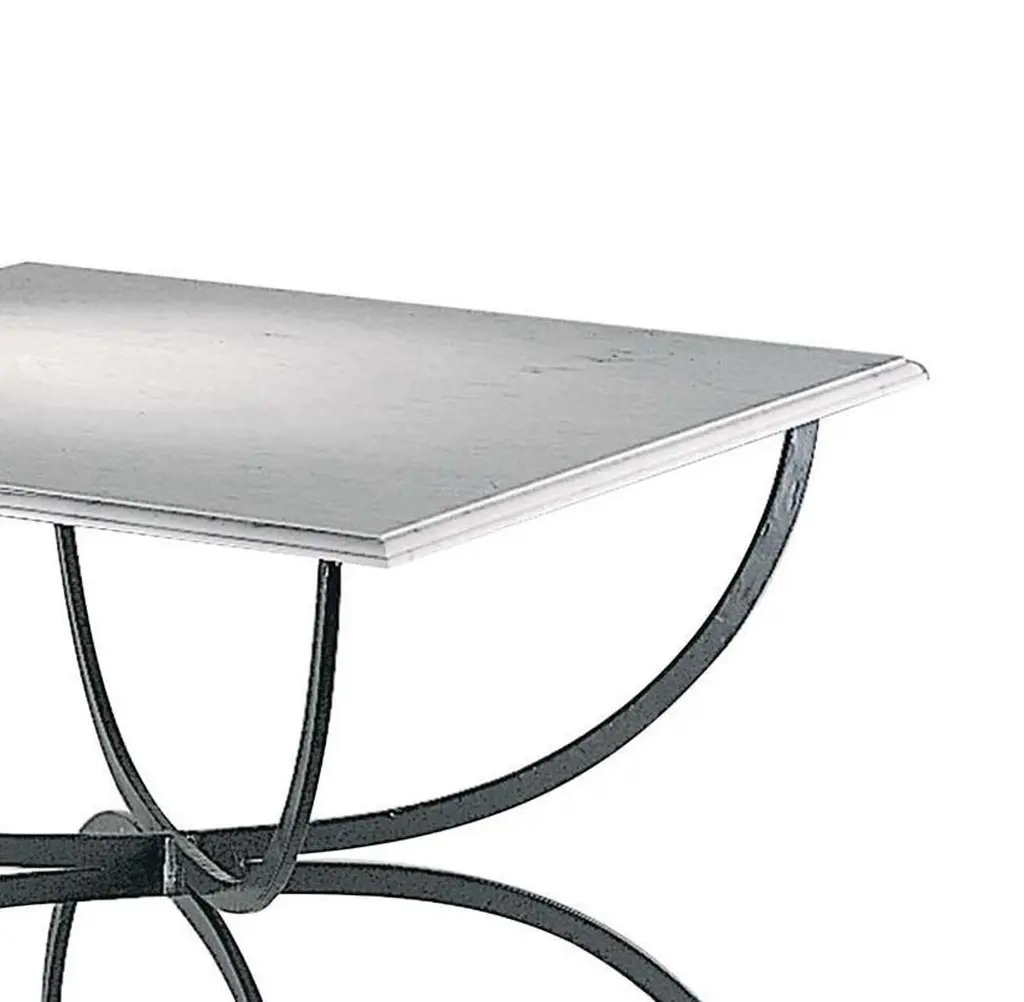 A striking addition to a patio, poolside, or terrace, this table is part of the Piazza Collection and evokes the understated elegance of Tuscan towns' piazzas. Inspired by traditional styles interpreted in a modern fashion, this table exudes timeless sophistication. The base has crossing semi-circular stainless steel legs that supports a square white Carrara marble top. Ideal for outdoor use, the iron is protected by a zinc treatment and a powder-based varnish.
