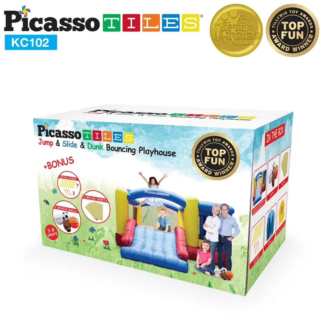 Picasso-tiles Outdoor Inflatable Bounce House Slide And Dunk W/ Jumping Area Playhouse, Toys For Kids 3+