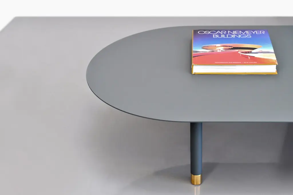 Pill Coffee Table by Phase DesignDimensions: D 149.9 x W 71.1 x H 33 cm. Materials: Powder-coated steel and brass.Powder-coated steel base with solid brass tips. Powder coat finishes are available in flat black, flat white, or flat gray. Prices may vary. Please contact us.The Pill-shaped coffee table addresses your coffee table needs in a simple yet specific manner. The generous size of the top allows for both displaying and serving purposes. A powder-coated steel top and legs are attached to solid brass feet, offering a small yet striking gesture.Autodidact award-winning designer Reza Feiz has always been drawn to the strength in simplicity. Lured to Southern California by its inventive, creative spirit, he quickly discovered his true calling among the vast community of creators and artisans whose skills and ingenuity expertly transform imagination into reality.Inspired by Los Angeles’ iconic landscape and the compelling beauty of the places and spaces he encountered, he envisioned furniture, lighting and tabletop accessories, fabricating them from contemporary materials with the help of a tightly knit coterie of craftspeople.The resulting restrained yet revolutionary pieces have garnered enthusiasm from an international audience.He’s been lauded as “An American designer who influences world design”, a “Style Pioneer” and “One of a group of select young designers who represent the leading edge of discovery in design.” Architectural Digest’s Mayer Rus noted that his “wide-ranging collections make a strong case for the enduring appeal of restrained modern design.” Surface Magazine raved that he “imbues his work with a 21st-century edge. His astute sense of restraint keeps the designs relevant in a constantly evolving industry, without needing to subscribe to trends.”“Reza Feiz imbues his work with a 21st-century edge. His astute sense of restraint keeps the designs relevant in a constantly evolving industry, without needing to subscribe to trends.”