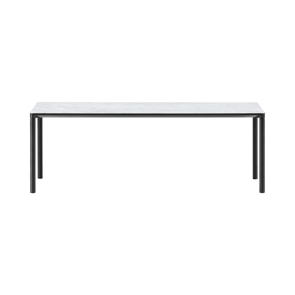 With its slender profile and robust construction, the Piloti Alu Table – Extra Large offers a refined surface that appears to float above its frame. Designed by Hugo Passos—a Portuguese-born, Copenhagen-based designer known for emphasizing the human scale in everyday objects—the table rests on a durable aluminum base in black powder-coated or brushed finishes. The tabletop is available in black laminate, white Carrara marble, or black Marquina stone, each paired with a distinctive black core. Offered in two heights, the design includes adjustable plastic gliders for stability on uneven surfaces.