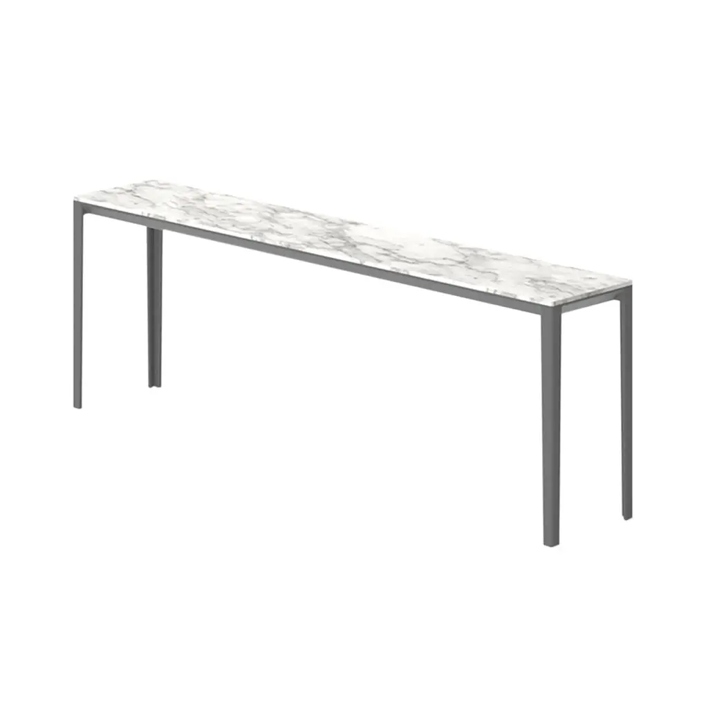 Built for durability and adaptability, the Piloti Alu Table in its large format features a sturdy aluminum frame designed to meet the demands of everyday use. The table's overall character shifts depending on the selected tabletop—available in materials such as stone or Fenix NTM laminate with a black core—making it suited to a wide range of interior contexts, from shared spaces to work settings and residential interiors. Its straightforward construction emphasizes practicality.