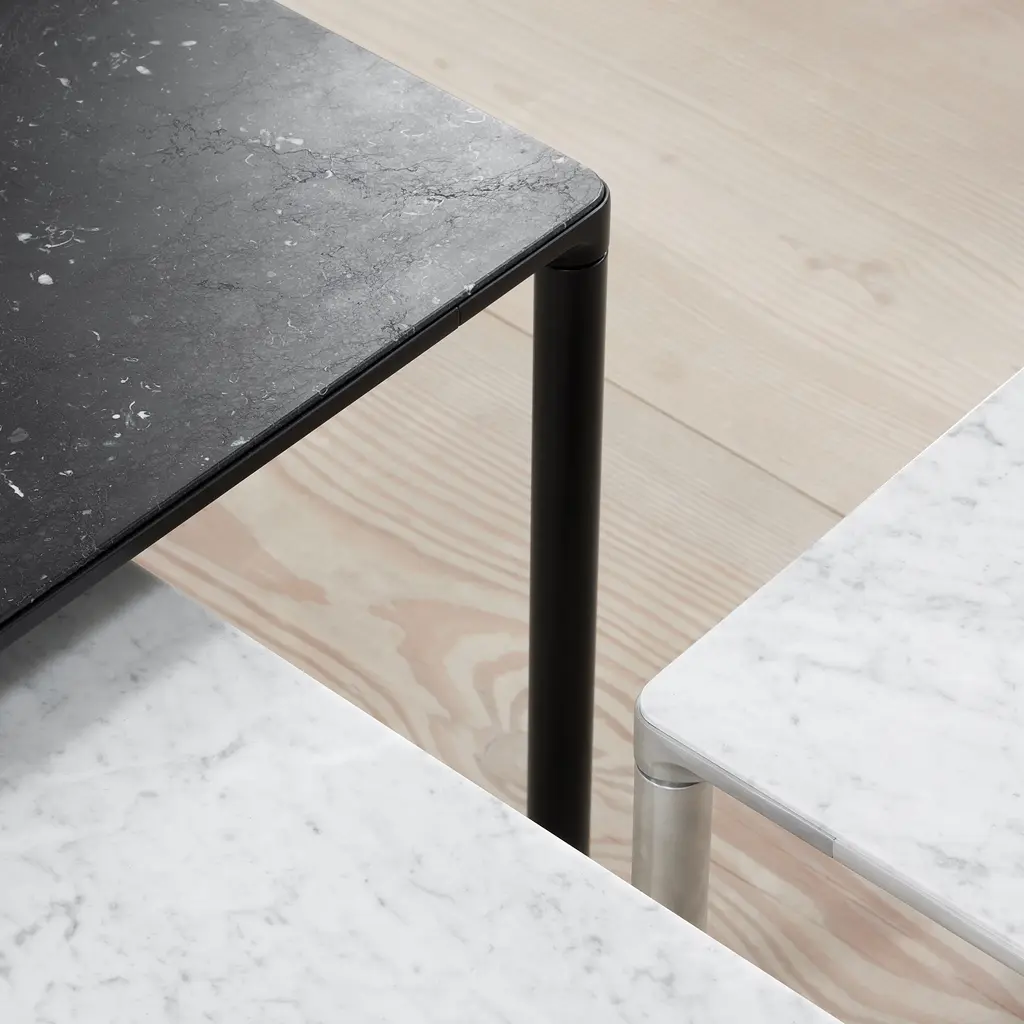 Built for durability and adaptability, the Piloti Alu Table in its large format features a sturdy aluminum frame designed to meet the demands of everyday use. The table's overall character shifts depending on the selected tabletop—available in materials such as stone or Fenix NTM laminate with a black core—making it suited to a wide range of interior contexts, from shared spaces to work settings and residential interiors. Its straightforward construction emphasizes practicality.