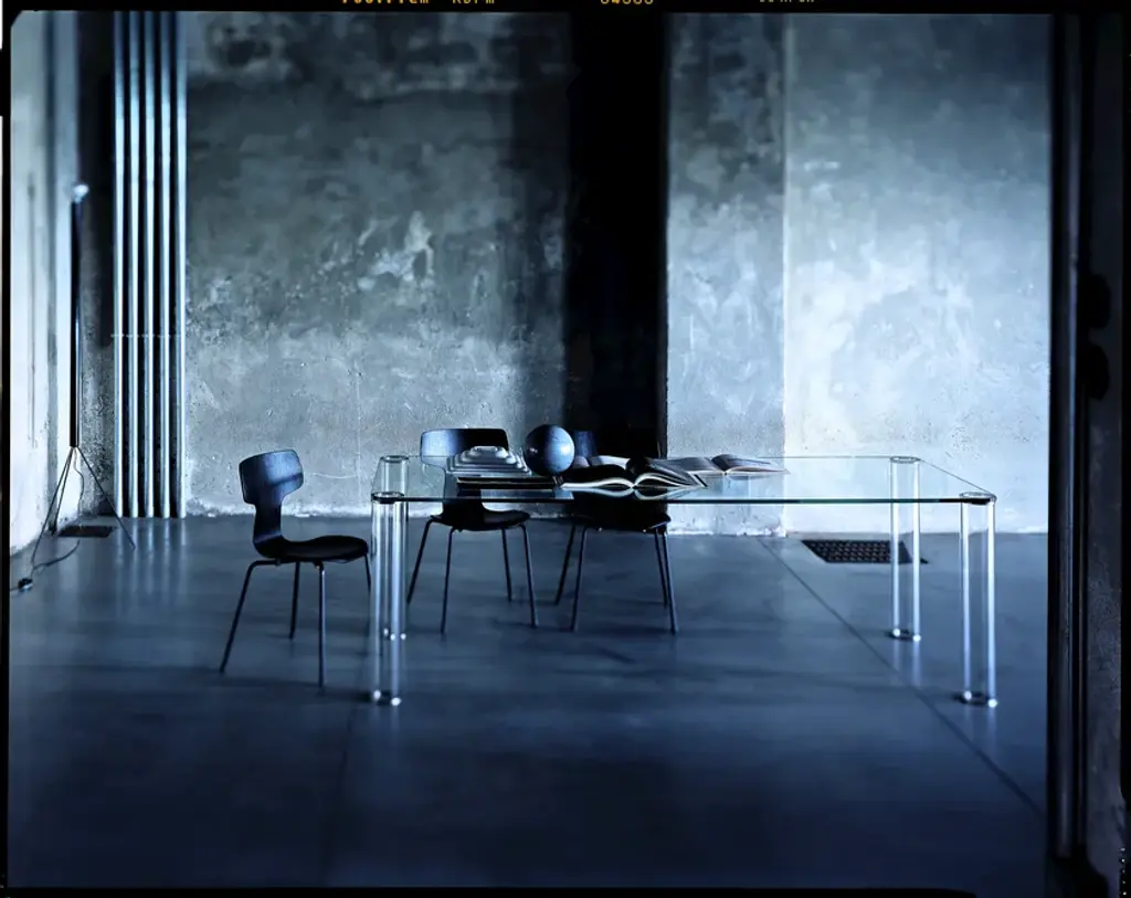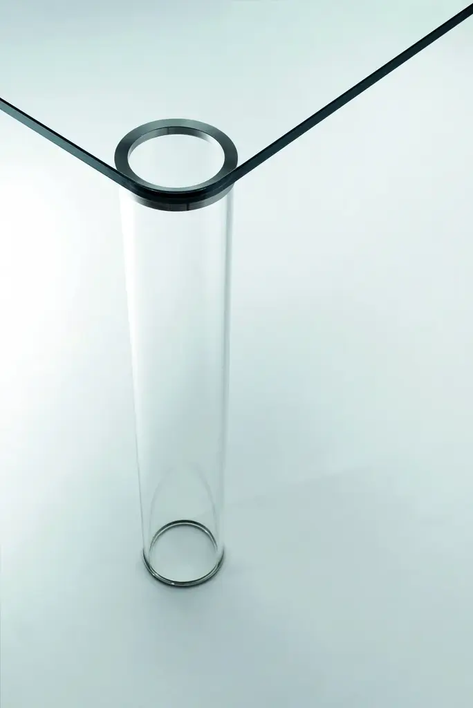 Series of high tables with rectangular, square and round shape.The top mm. 15 thick tempered is available in transparent, transparent extralight, acid-etched extralight, glossy lacquered or opaque lacquered glass.The cylindrical feet are in transparent borosilicate glass.FINISHES:- Transparent glass- Transparent extralight glass- Acid-etched extralight glass- Lacquered glasses- Opaque lacquered glassThe cylinders in borosilicate glass can present inside impurities and air bubbles, which are an intrinsic feature of the material and can not be a reason for complaint. AVAILABLE CUSTOM MADE