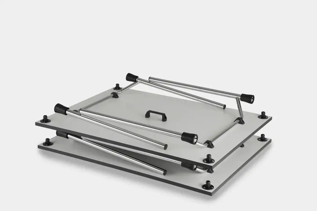Workspaces become flexible and dynamic, as well as shared. Piuma is a practical, light and handy table that allows you to follow fast changes in the spaces, going from training to study or from co-working to single desk. A table with folding steel legs equipped with a simple and aesthetic nylon mechanism that integrates the innovative system for locking the legs. On request, it is supplied with an handle for easy transportation, once it’s closed.