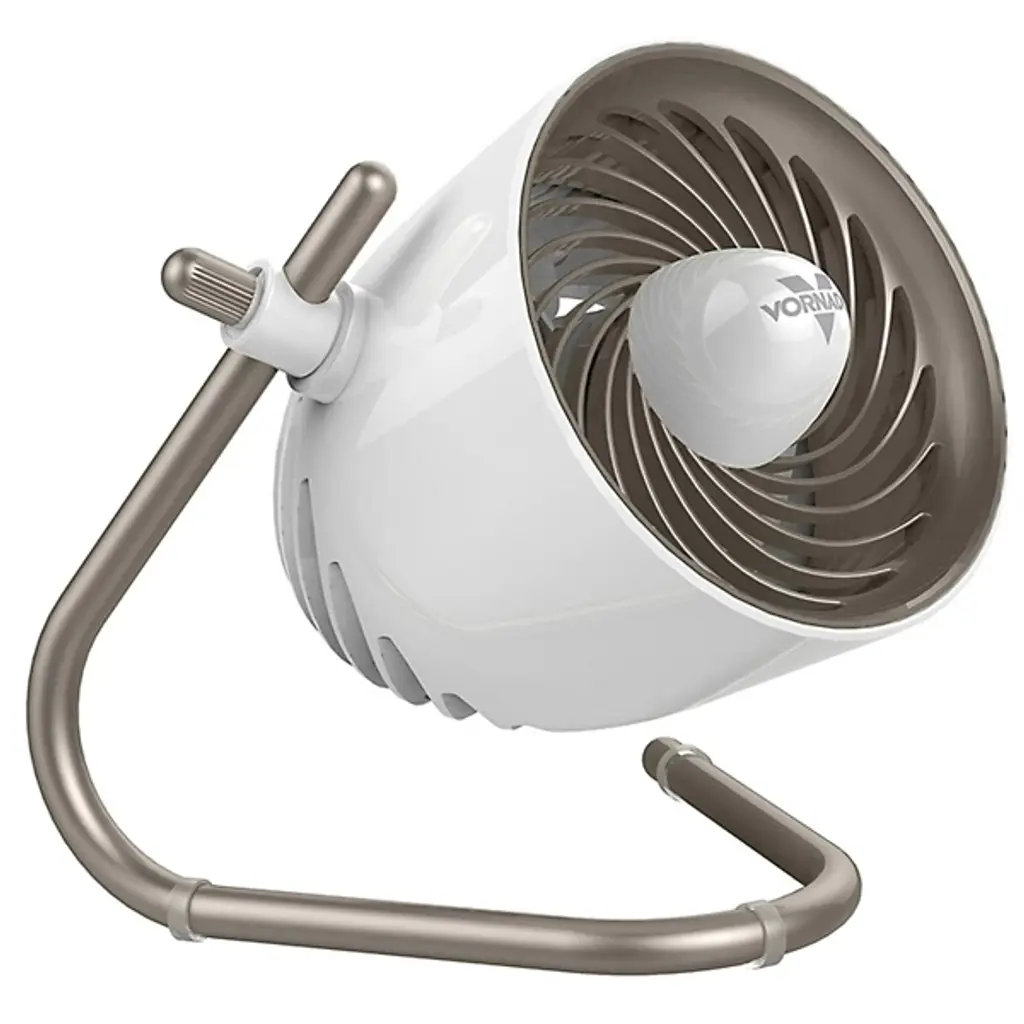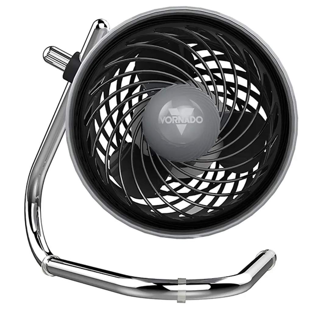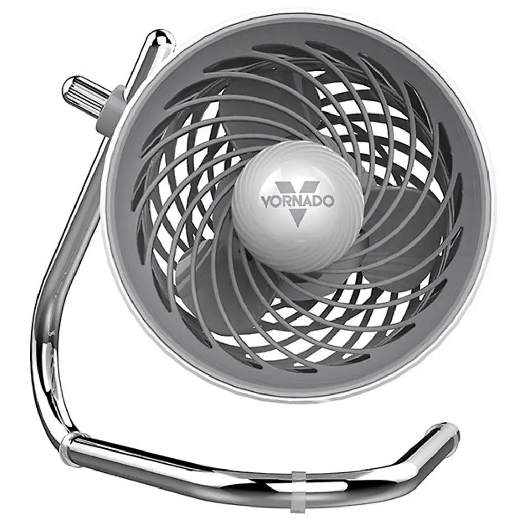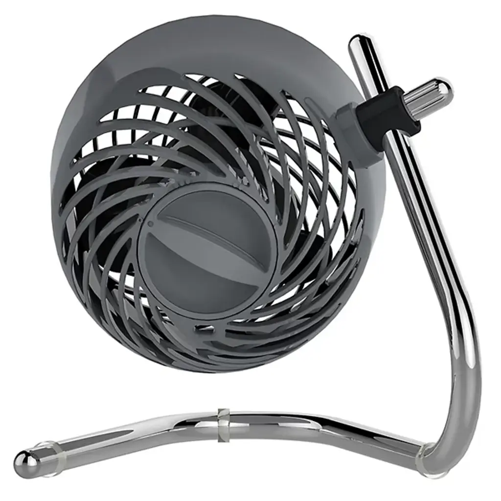 Grace the smaller, more personal spaces in your home with energy-efficient cooling with the Pivot Table Top Fan from Vornado. The compact modern design allows for multidirectional airflow throughout the room while taking up minimal space in the room. The slim metal body curves gently, doubling as the base and creating a floating silhouette that elevates the décor. With three speed settings and the ability to pivot 180 degrees, this fan guarantees relaxation and the perfect environment whenever in use.
