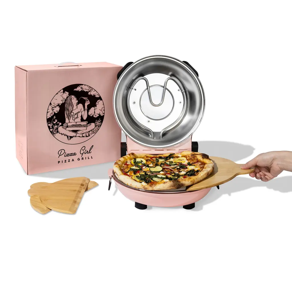 Pizza Girl Pink Tabletop Pizza Grill With Scraper