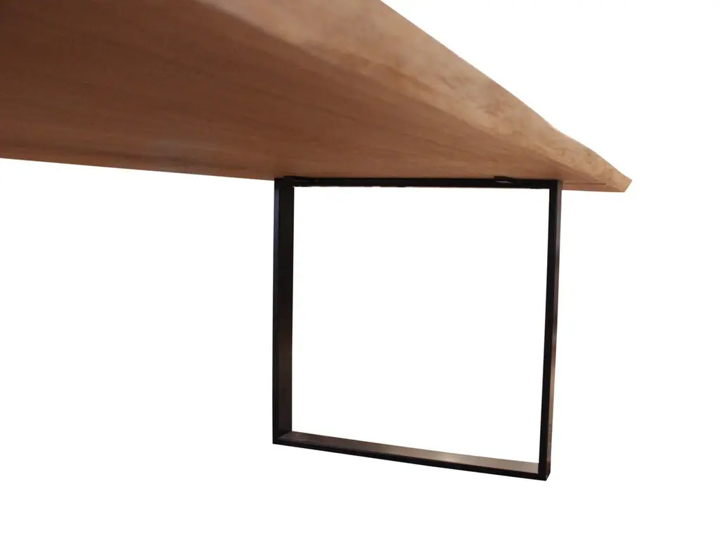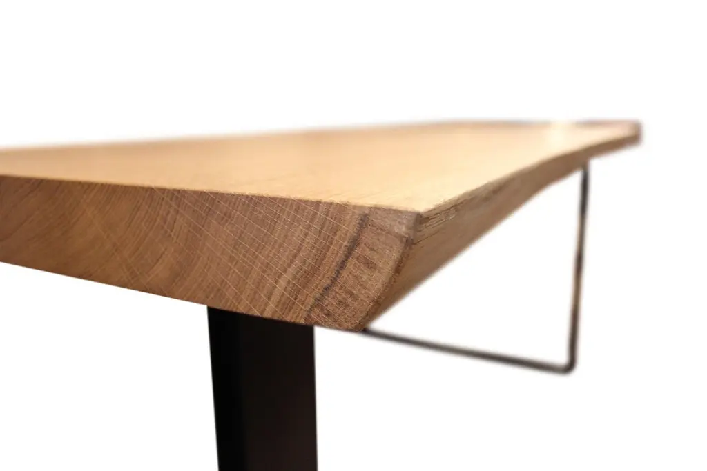 Plank Table Of Oak And Black Metal Frame, Made Of Two Planks With Natural Edges