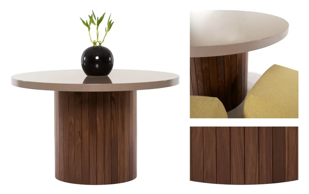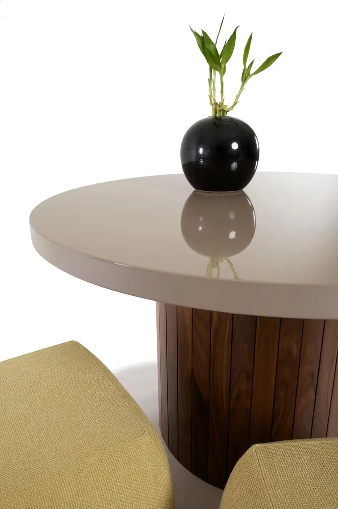 Plank Table Rounded Lacquer Top Wood Base Walnut Custom Made To Order Breakfast