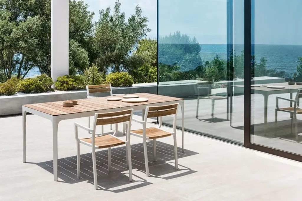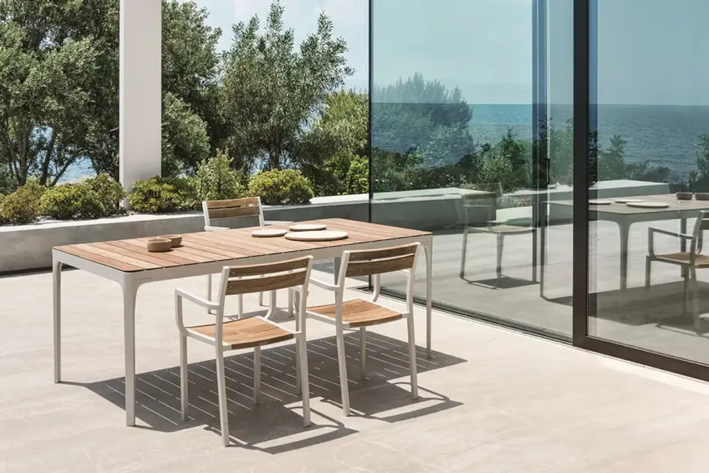 PLAY is a family of square and rectangular tables with essential design, contemporary character and harmonious geometry. Play tables offer the chance to play with the sizes and varieties of materials that make up the top: painted aluminium, natural, porcelain tile with a stone effect or a special textured finish. Thought up for versatile mixing and matching with other products in the Ethimo collection, they are suitable for any need in the home or contract sector.