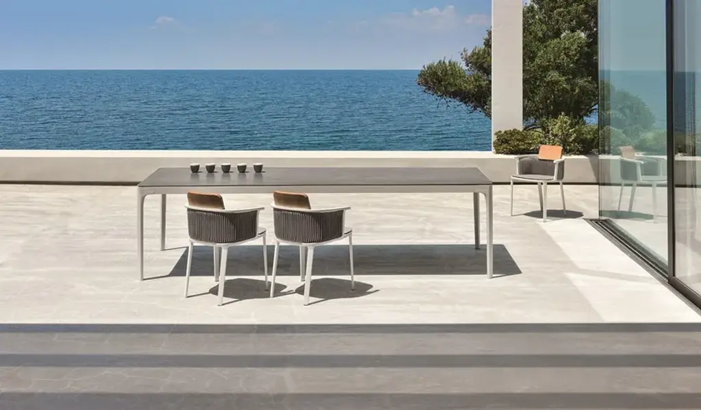 PLAY is a family of square and rectangular tables with essential design, contemporary character and harmonious geometry. Play tables offer the chance to play with the sizes and varieties of materials that make up the top: painted aluminium, natural, porcelain tile with a stone effect or a special textured finish. Thought up for versatile mixing and matching with other products in the Ethimo collection, they are suitable for any need in the home or contract sector.
